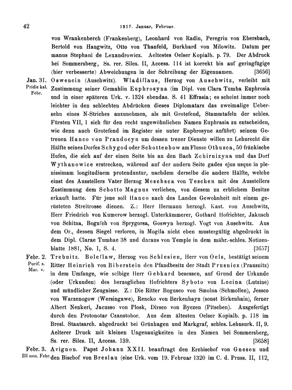 [3658) Ss. rer. Siles. II, Access. 139. Febr. 3. Avignon.