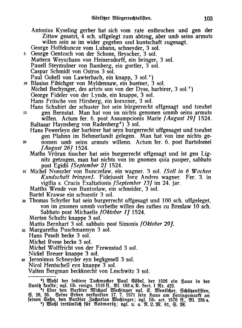 [August 19] 1524. Baltasar Haynsberg von Radenberg3) 3 sol. Hans