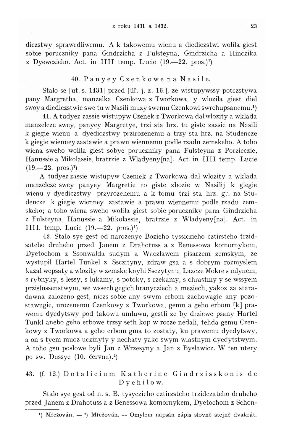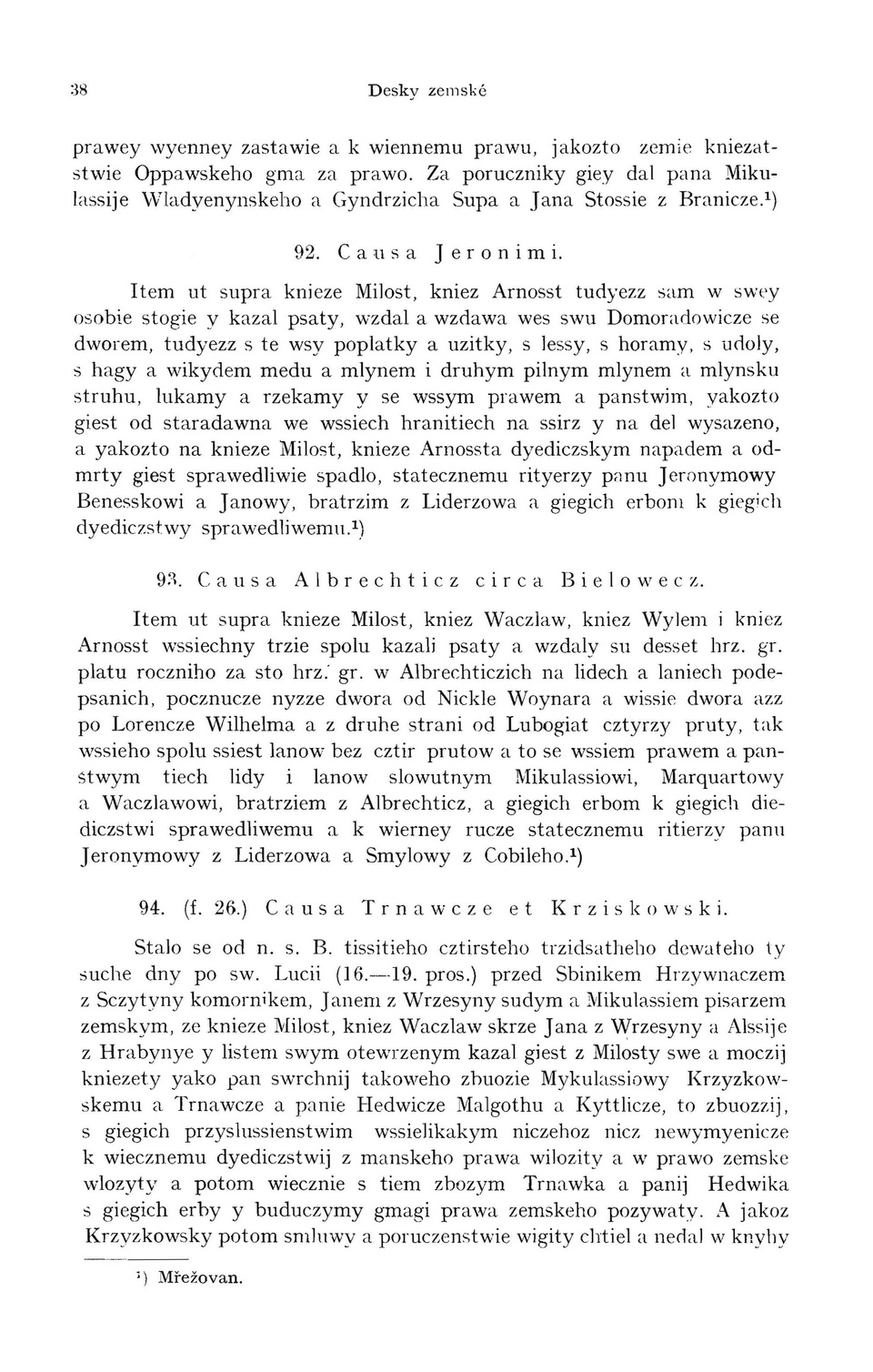sudym a Mikulassiem pisarzem zemskym, ze wistupila 1) Mřežován. z