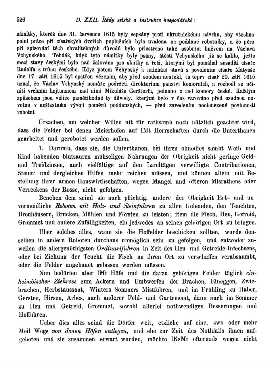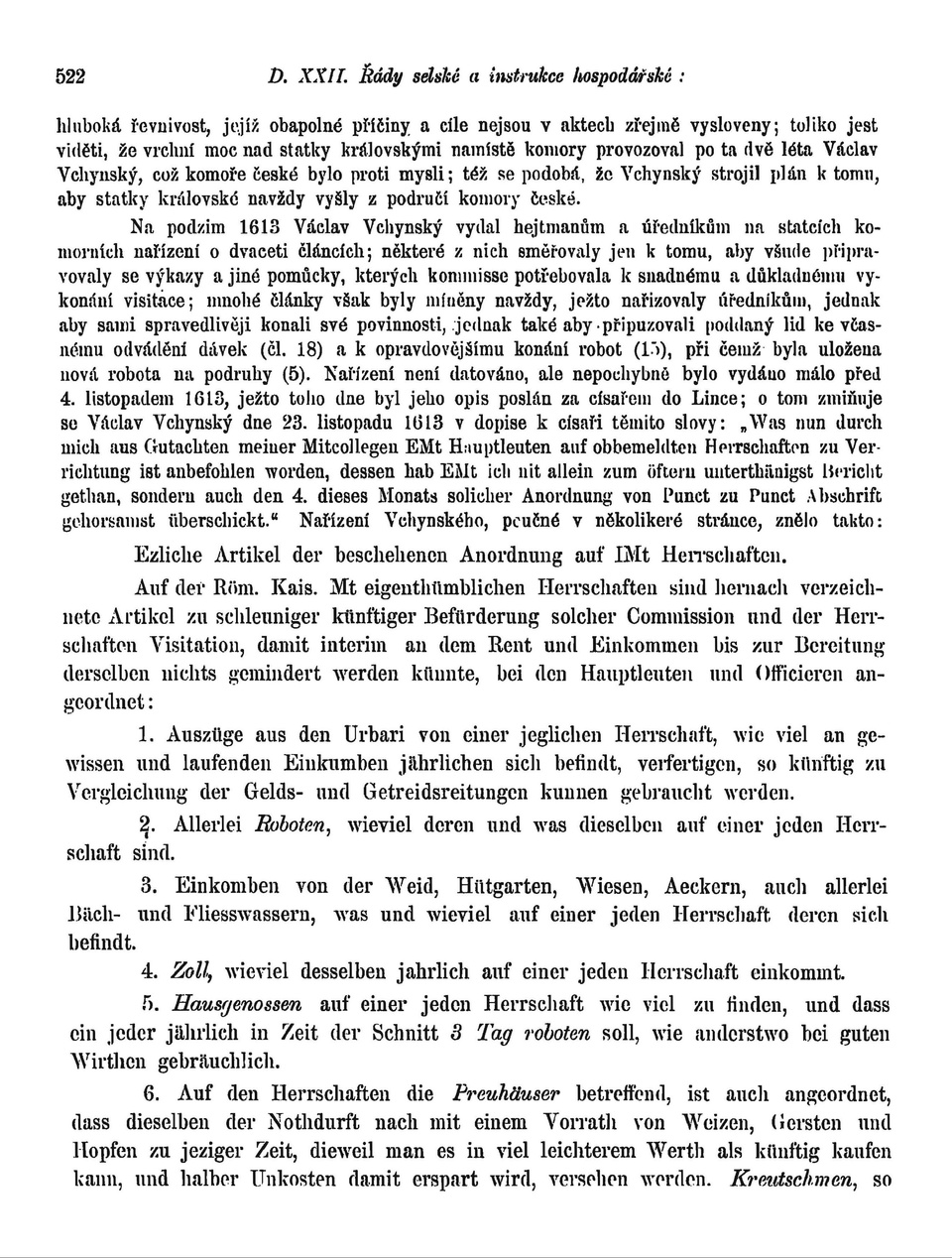 jakožto jich visitatora 521; o robotách, důchodech, clu, pivovárech 522;