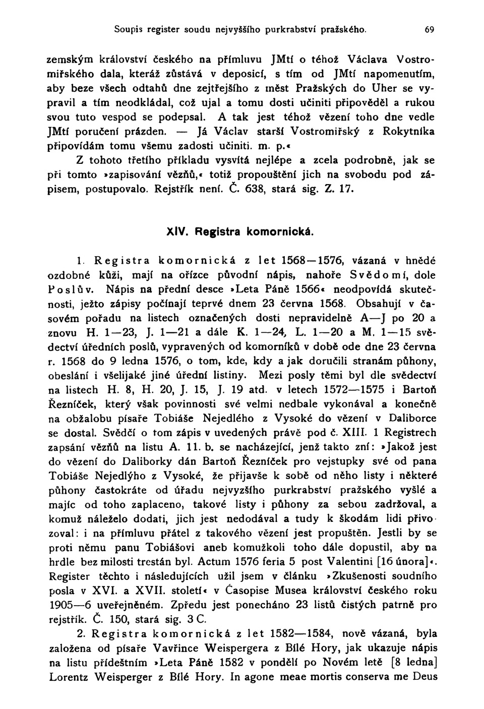 Vysoké, písař soudu nej- vyzšího purkrabství Pražského, Lorenc Waisperger z