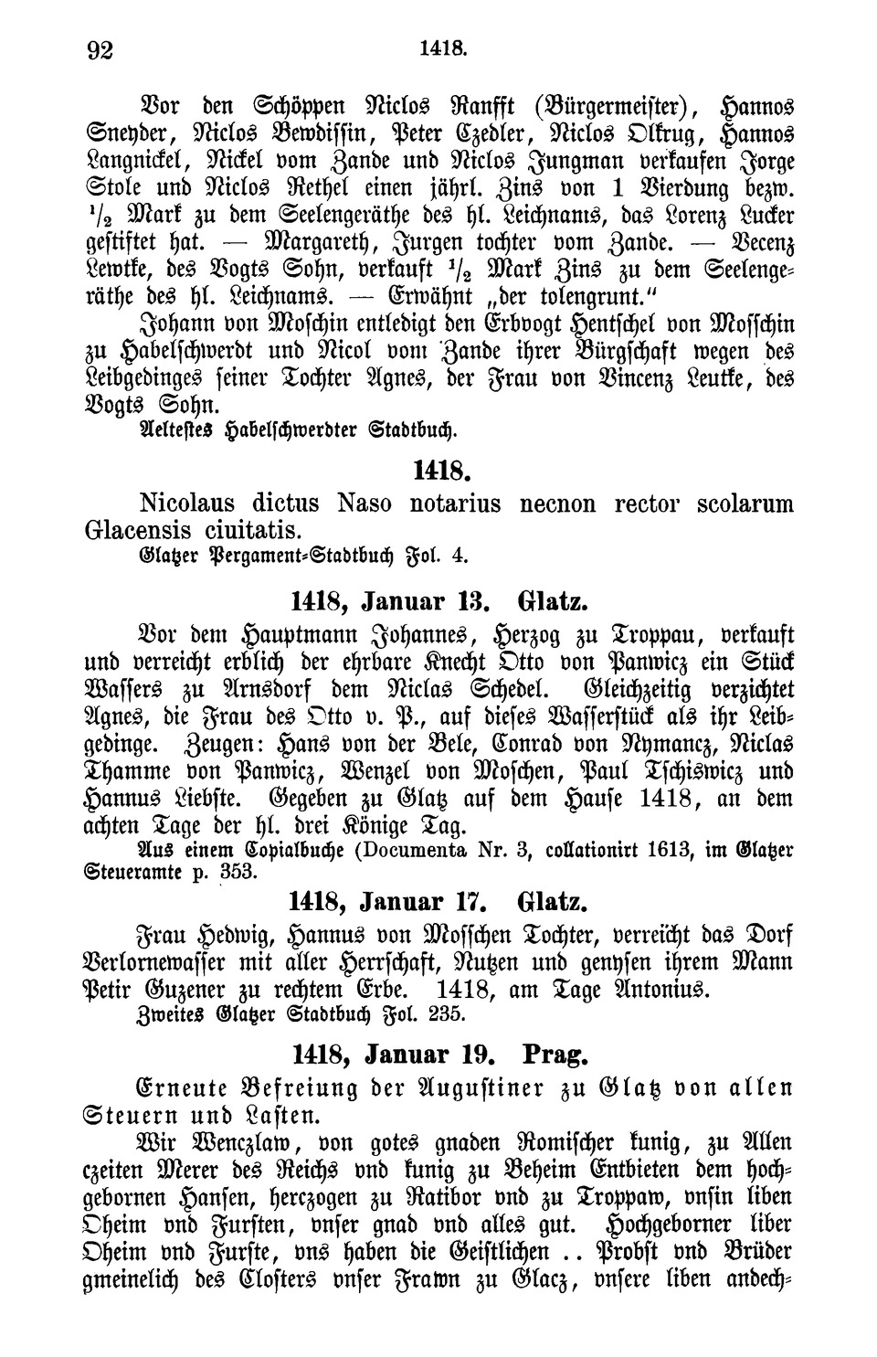 im Glatzer — Steueramte p. 353. 1418, Januar 17. Glatz.