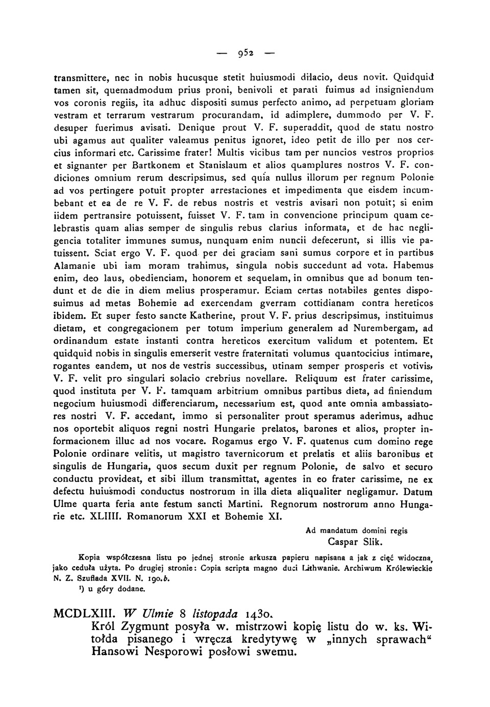 dod. 7) u góry. MCDIII. W Tyrnawie 23 marca 1430.