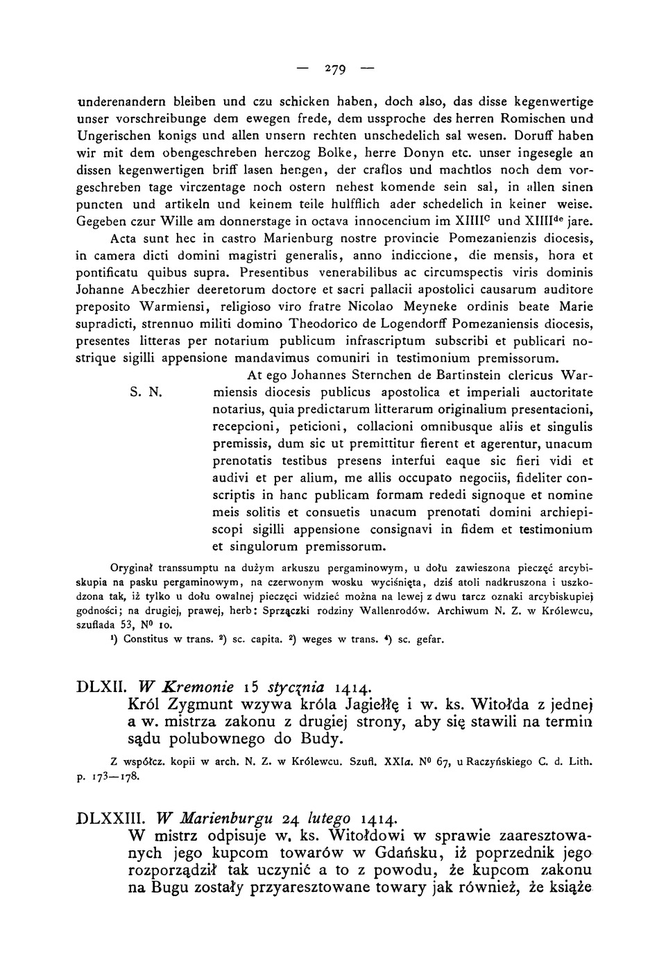 trans. 4) sc. gefar. DLXII. W Kremonie 15 stycznia 1414.