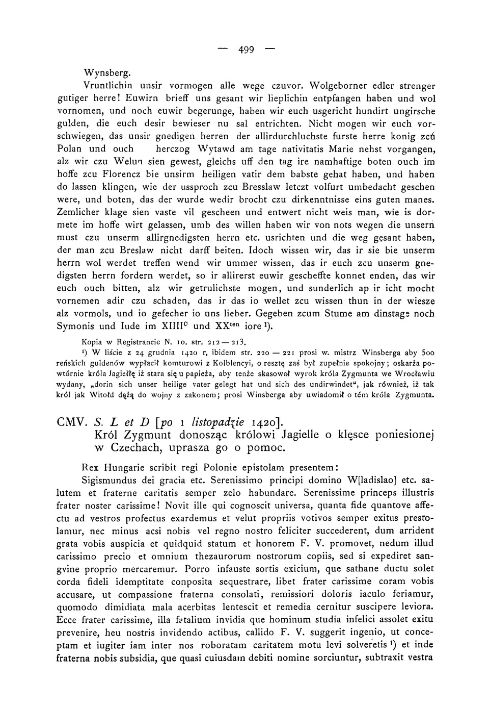 Zygmunta. CMV. S. L et D [po 1 listopadzie 1420].