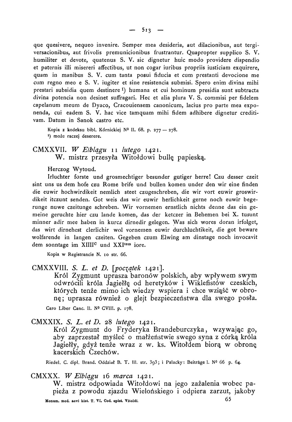 10 str. 66. CMXXVIII. S. L. et D. [poczatek 1421].