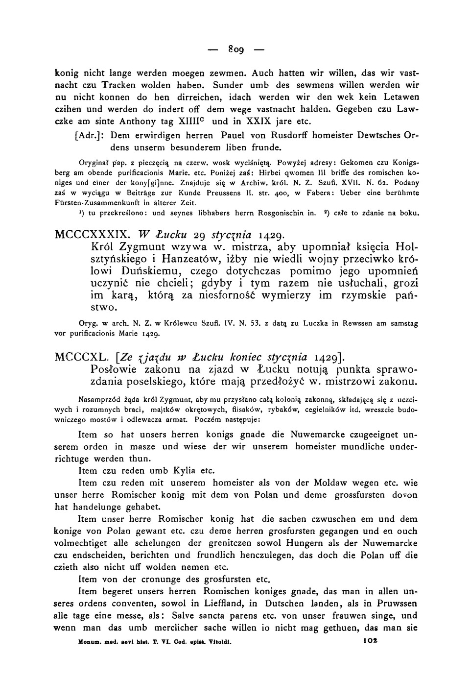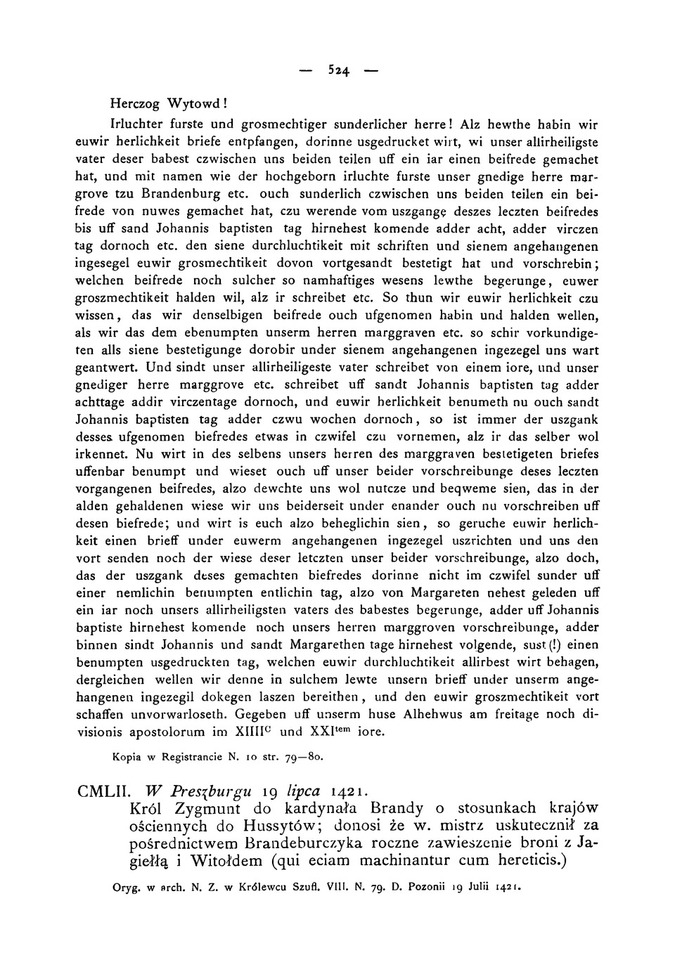 Preuss. VII. N. 531. MCCCLXXII. W Preszburgu 21 sierpnia 1429.