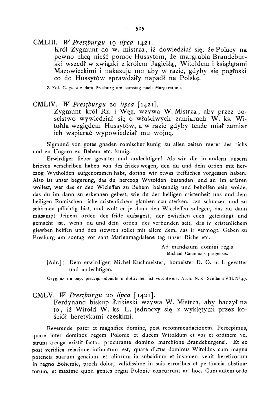 19 Julii 1421. 525 CMLIII. W Preszburgu 19 lipca 1421.