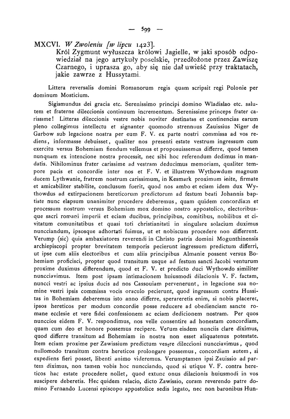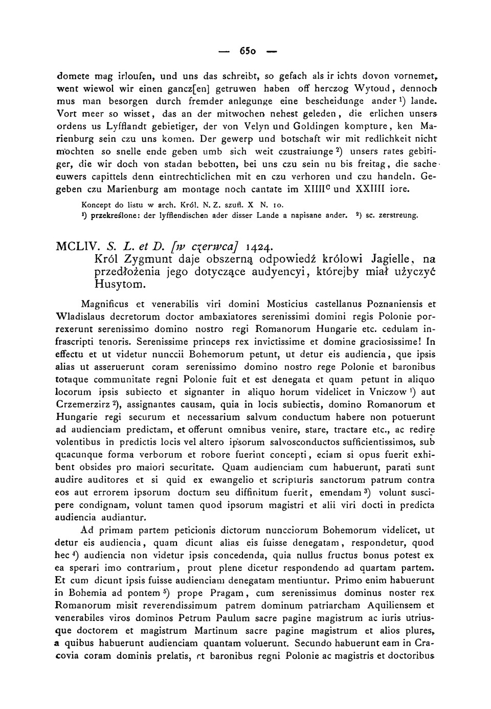 daje glejt bezpieczeństwa Hussytom celem audy- encyi, której im užyczy