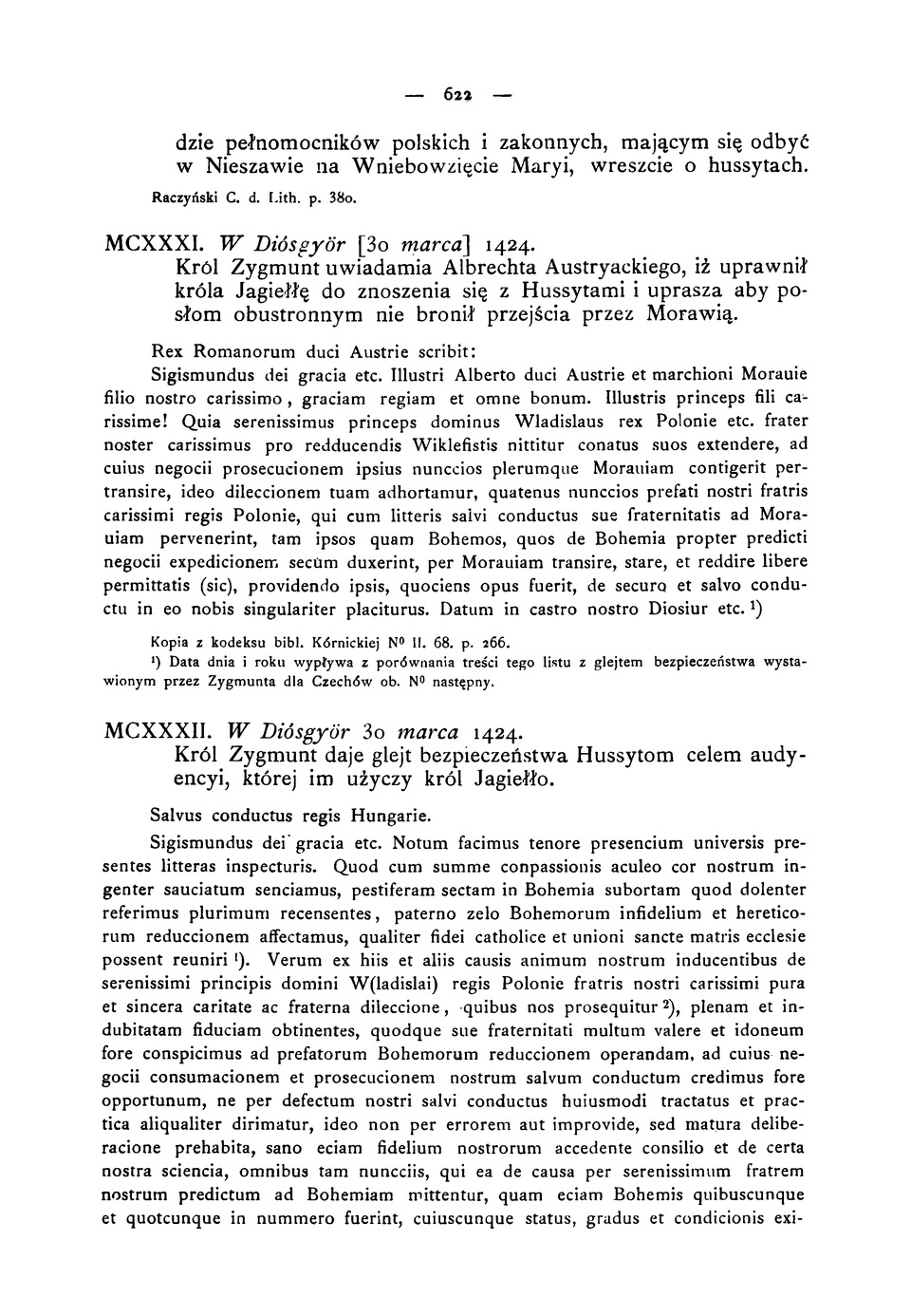 Czechów ob. N° następny. MCXXXII. W Diósgyör 30 marca 1424.