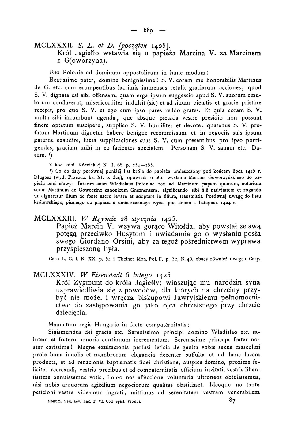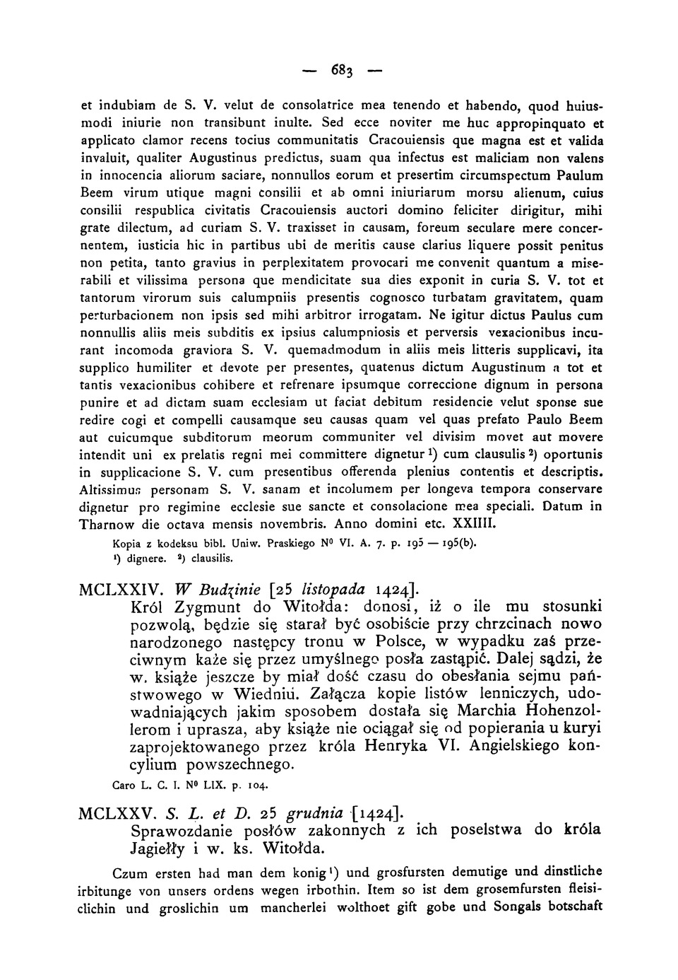 również uwagę u Cary. MCLXXXIV. W Eisenstadt 6 lutego 1425