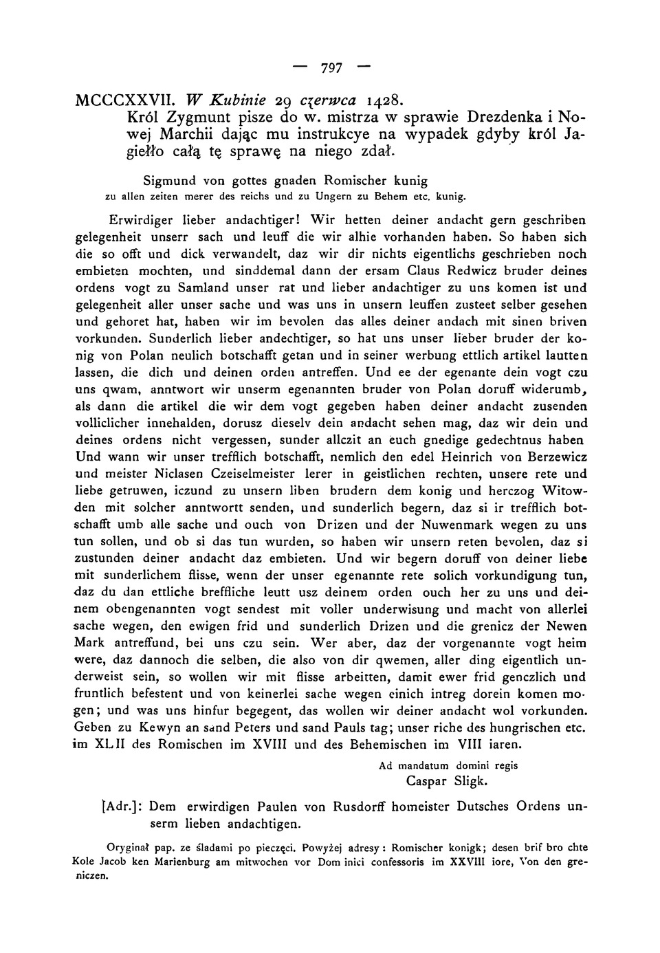 CXXI. p. 209. 797 MCCCXXVII. W Kubinie 29 czerwca 1428.
