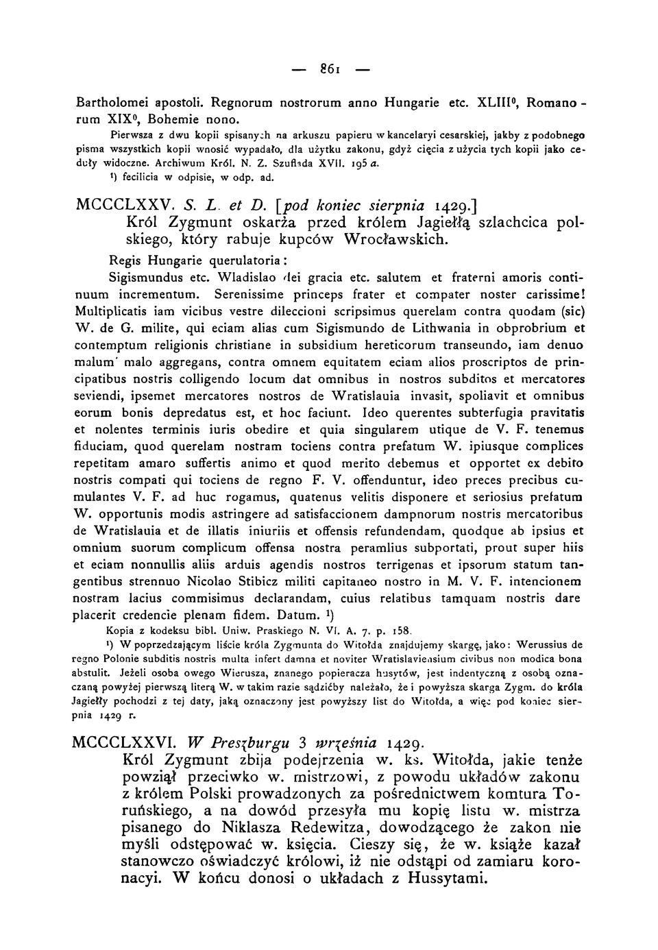 sier- pnia 1429 r. MCCCLXXVI. W Preszburgu 3 września 1429.