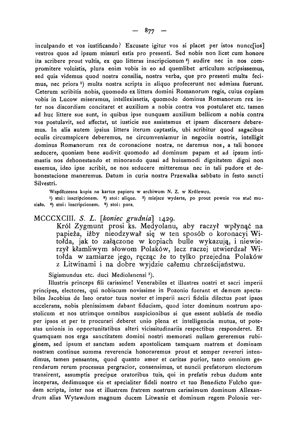 inscripcionem. 5) stoi: pora. MCCCXCIII. S. L. [koniec grudnia] 1429.