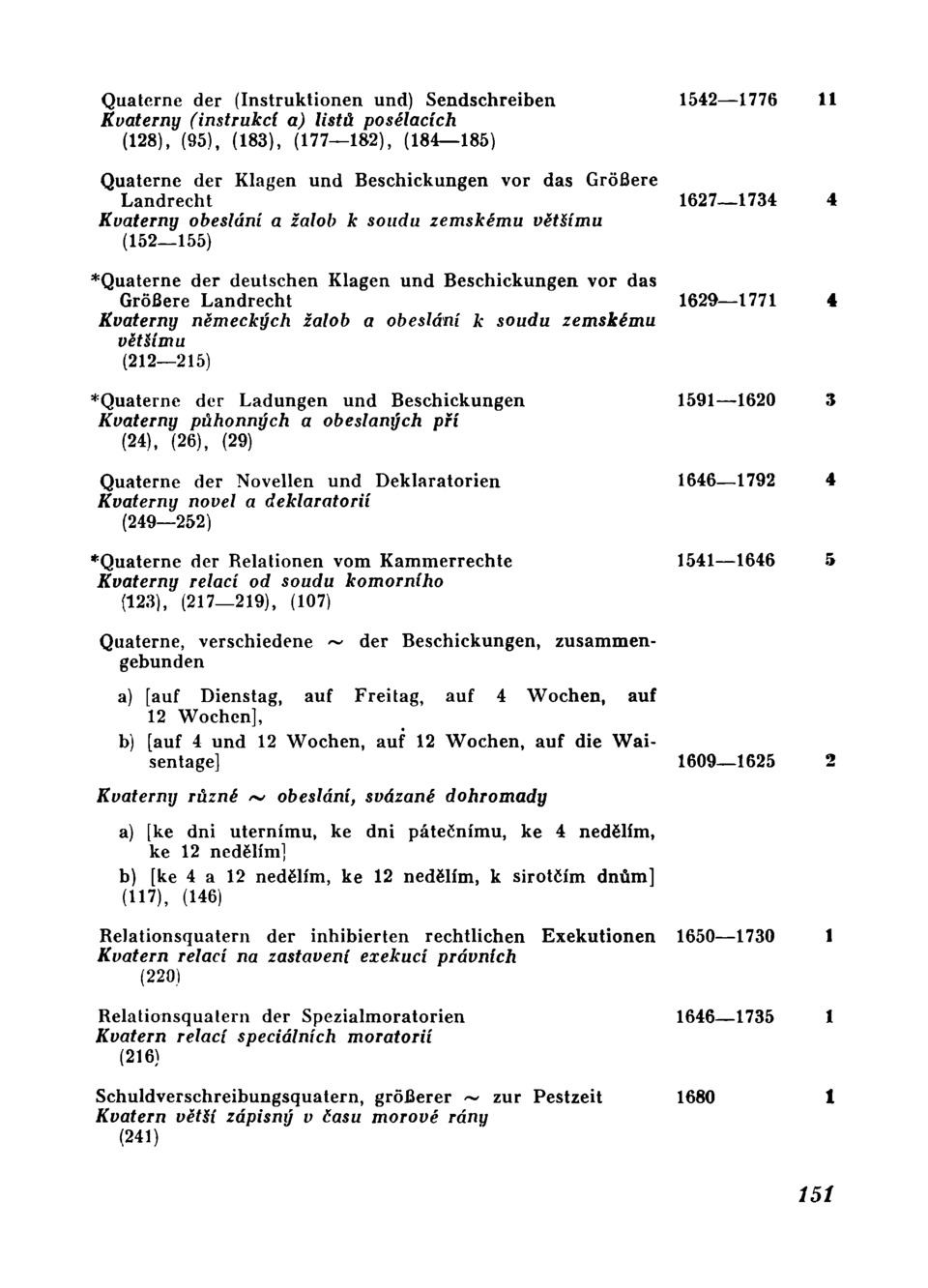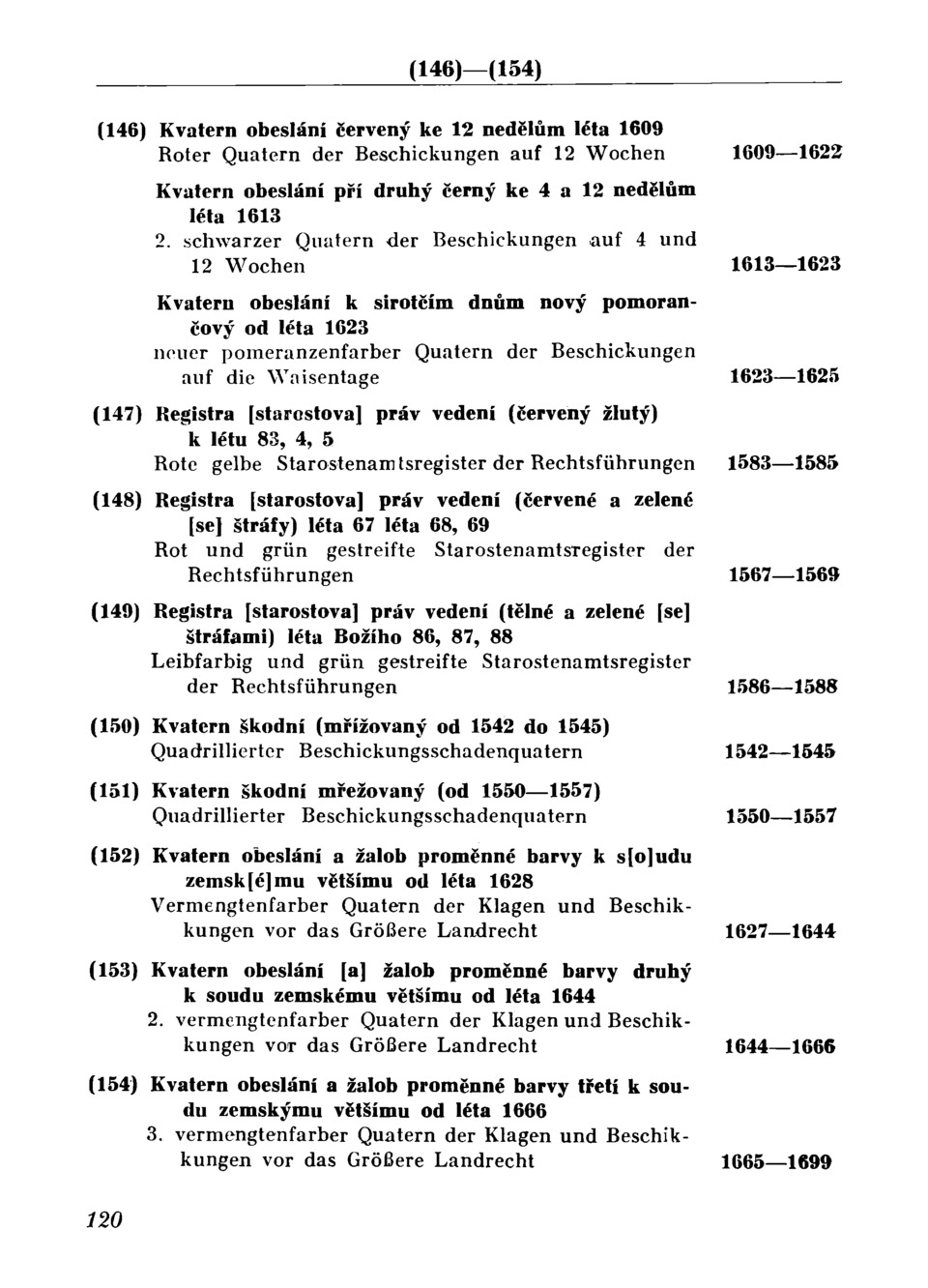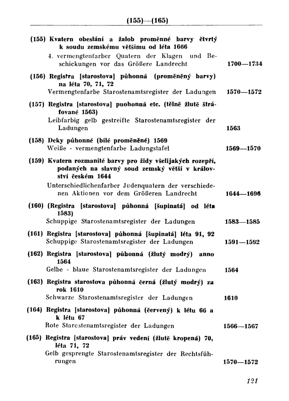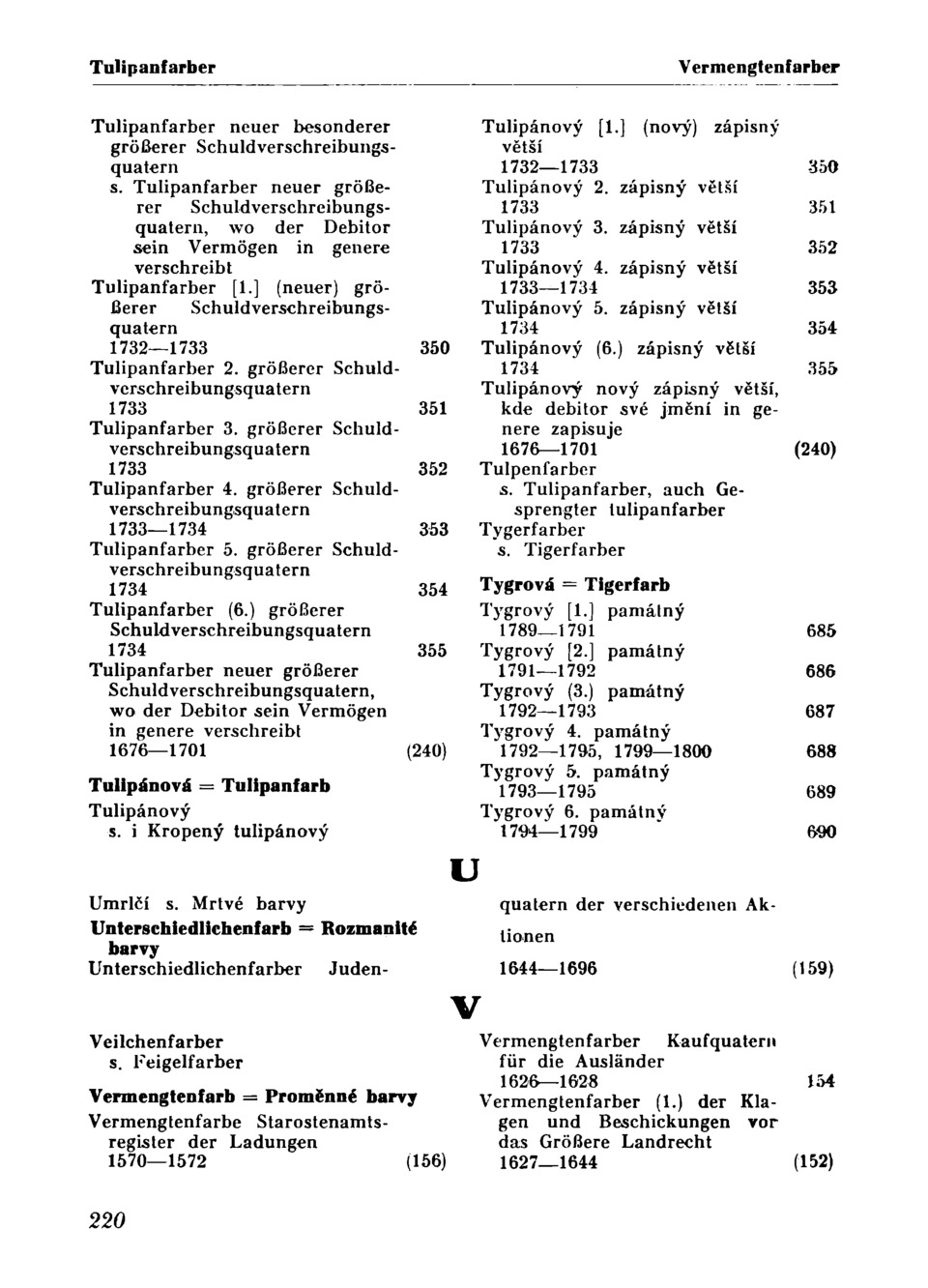 1627— 1644 (152) Vermengtenfarber Vořechový Vermengtenfarber 2. der Klagen und