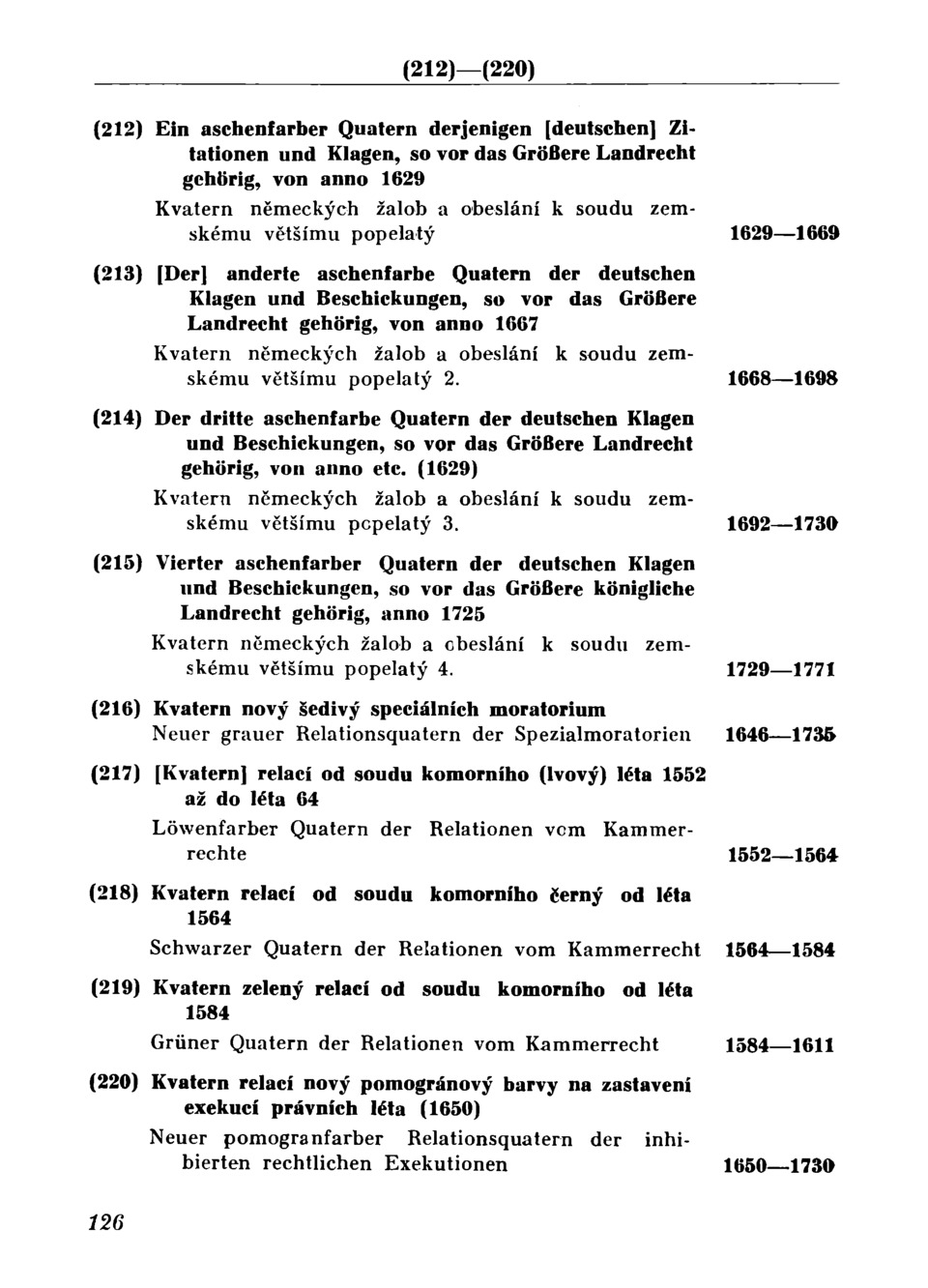 1665—1699 120 (155)—(165) (155) Kvatern obeslání a žalob proměnné barvy