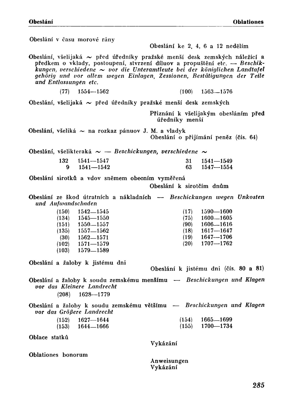 k soudu zemskému většímu — Beschickungen und Klagen vor das
