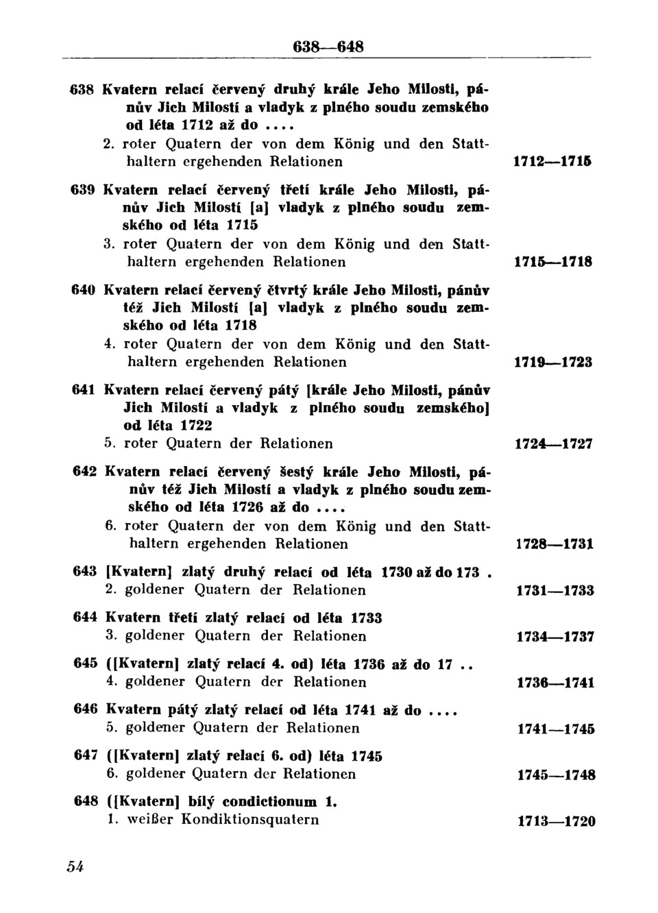 Relationen 1707—1712 53 638—648 638 Kvatern relací červený druhý krále