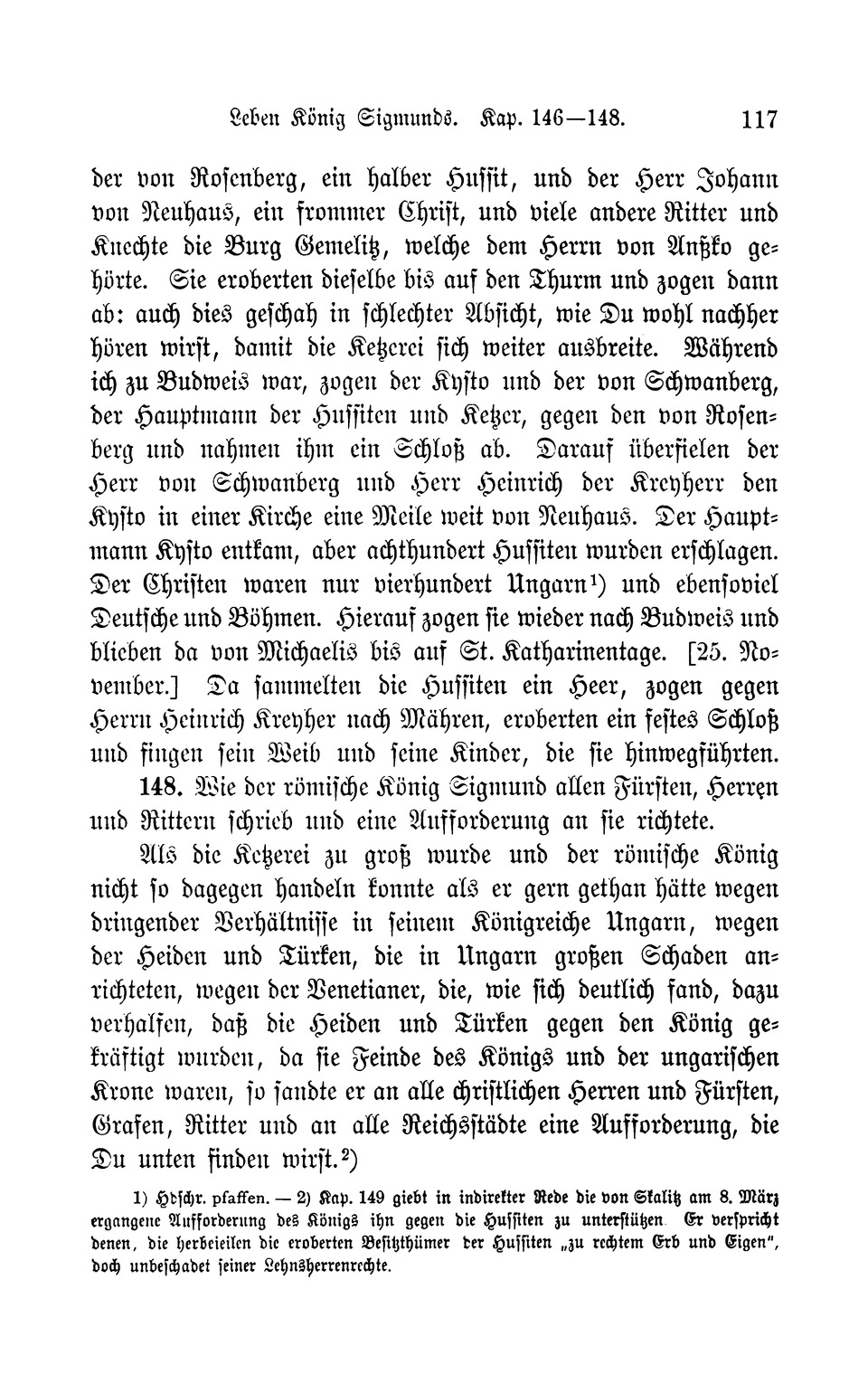 146—148. 117 der von Rosenberg, ein halber Hussit, und der