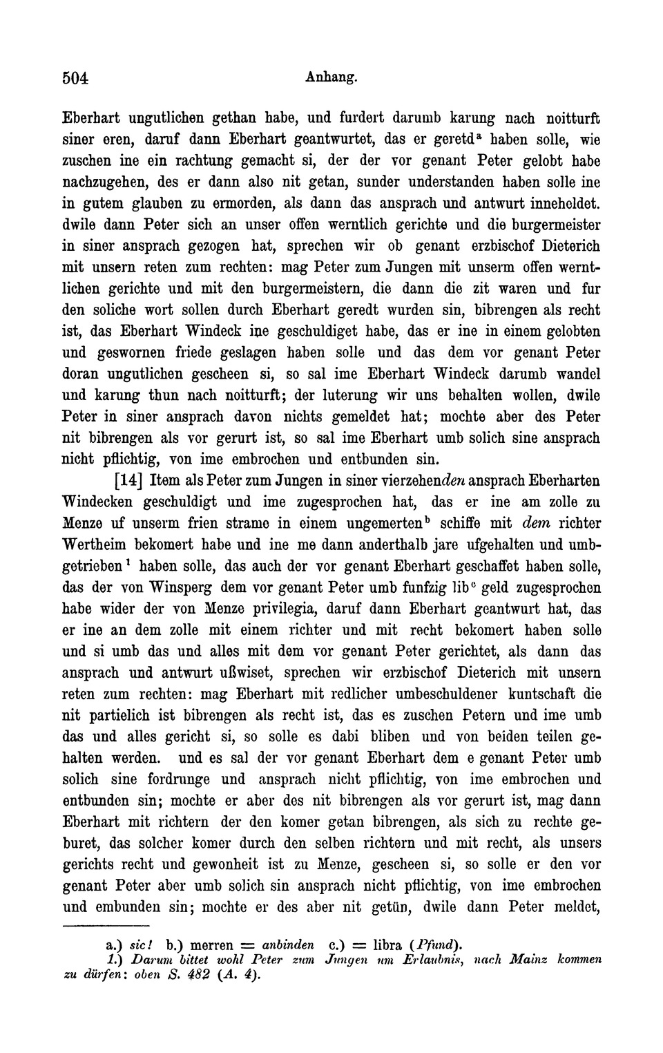 solichen sinen nunden c.) Hds. begriffet. 1.) Wann? Anhang. 503