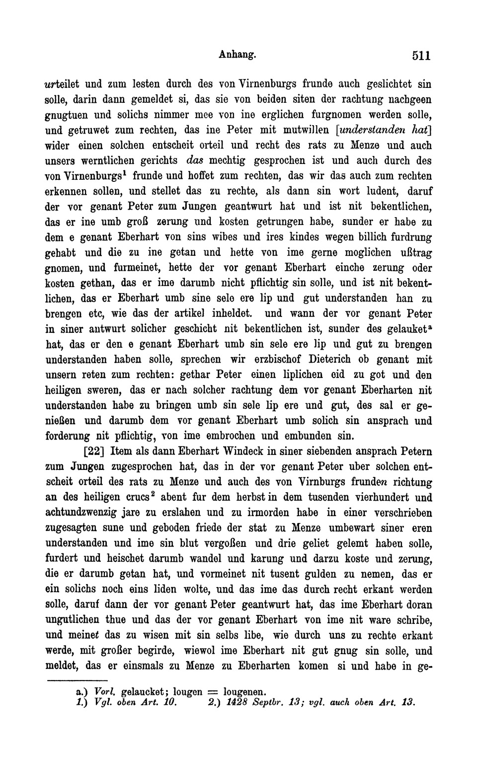 1426 setzen. 502 Anhang. Peter zum Jungen furmeinet, daz sich