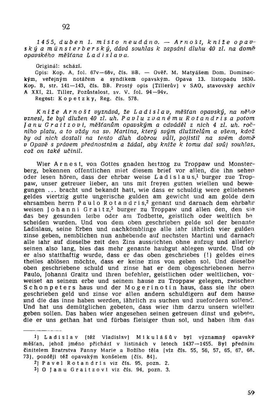 a Janu Graitzovi. Originál na pergameně v městském archívu opavském,