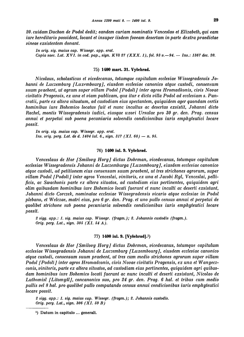 29) 1389 post iul. 6. Vyšehrad.1) Nicolaus dictus Decani, civis