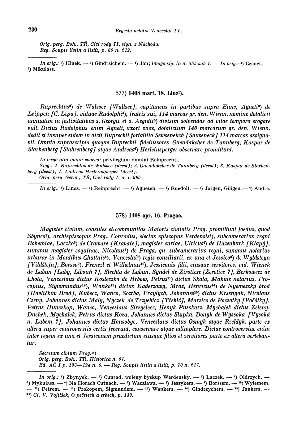 578) 1408 apr. 16. Pragae. Magister civium, consules et communitas