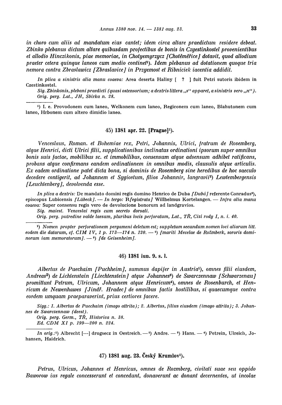 Ulreich, Jo- hansen, Haidrich. 47) 1381 aug. 23. Český Krumlov1).