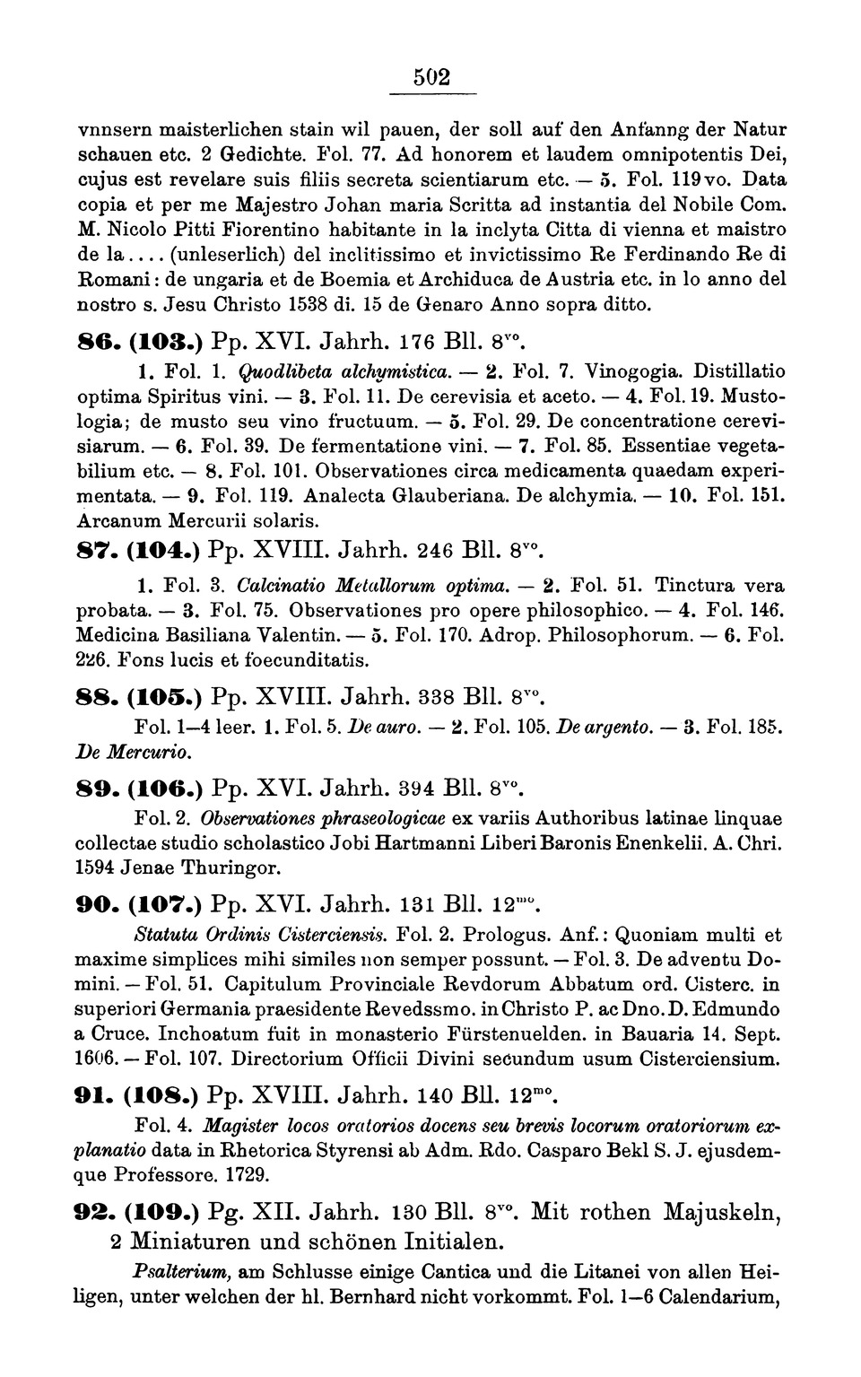 Handschriften-Verzeichnisse Wilhering Schlierbach Osseg Hohenfurt Stams