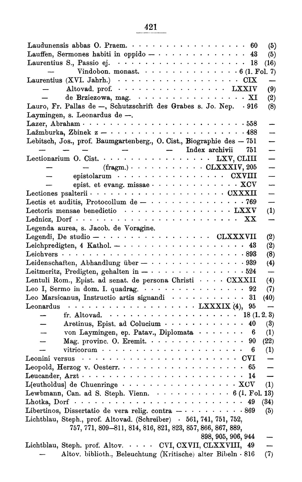 Cist., Biographie des — 751 — Index archivii 751 Lectionarium