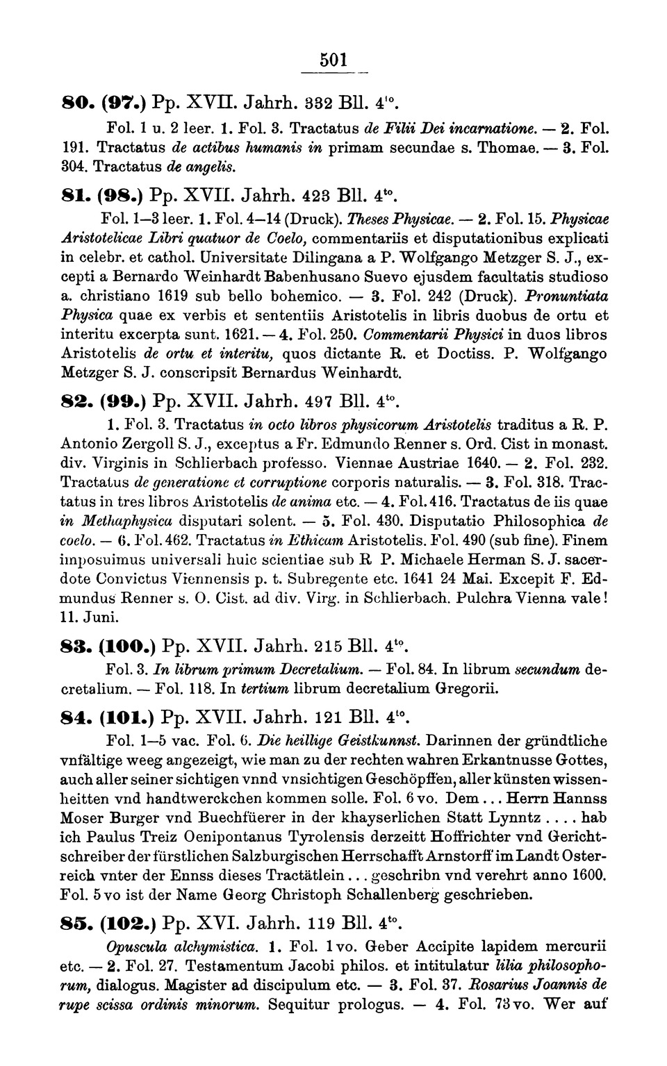 Handschriften-Verzeichnisse Wilhering Schlierbach Osseg Hohenfurt Stams