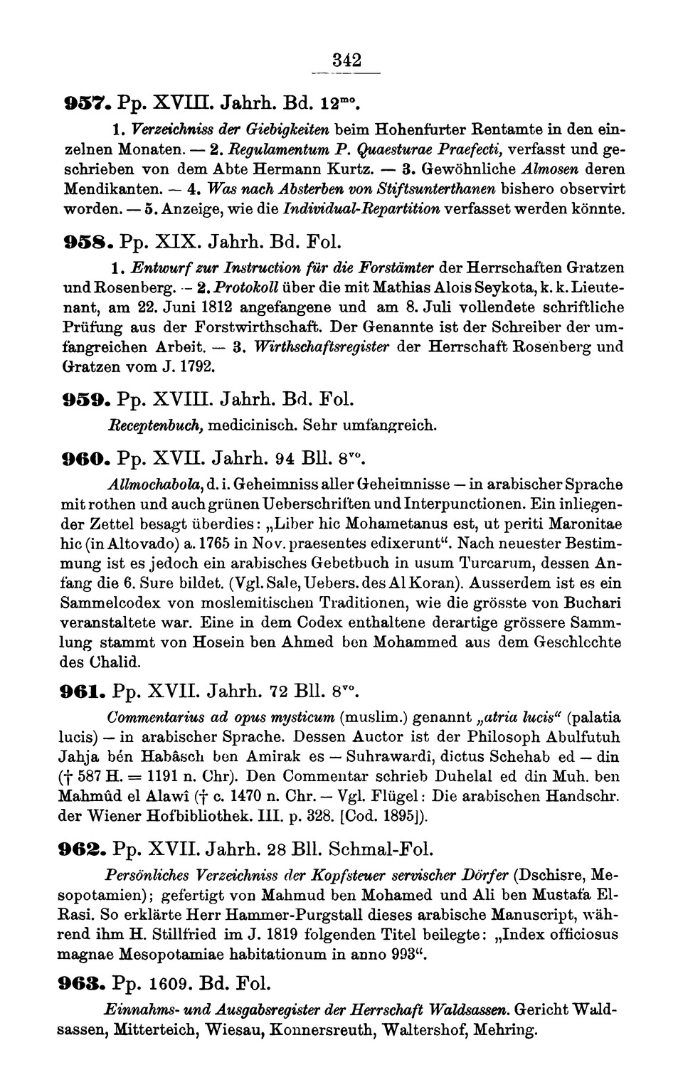 Handschriften-Verzeichnisse Wilhering Schlierbach Osseg Hohenfurt Stams