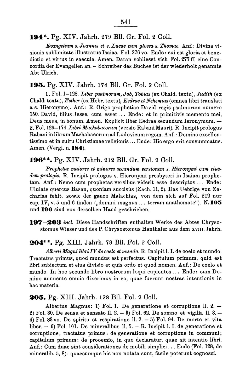 materia. 205. Pg. XIII. Jahrh. 128 Bll. Fol. 2 Coll.