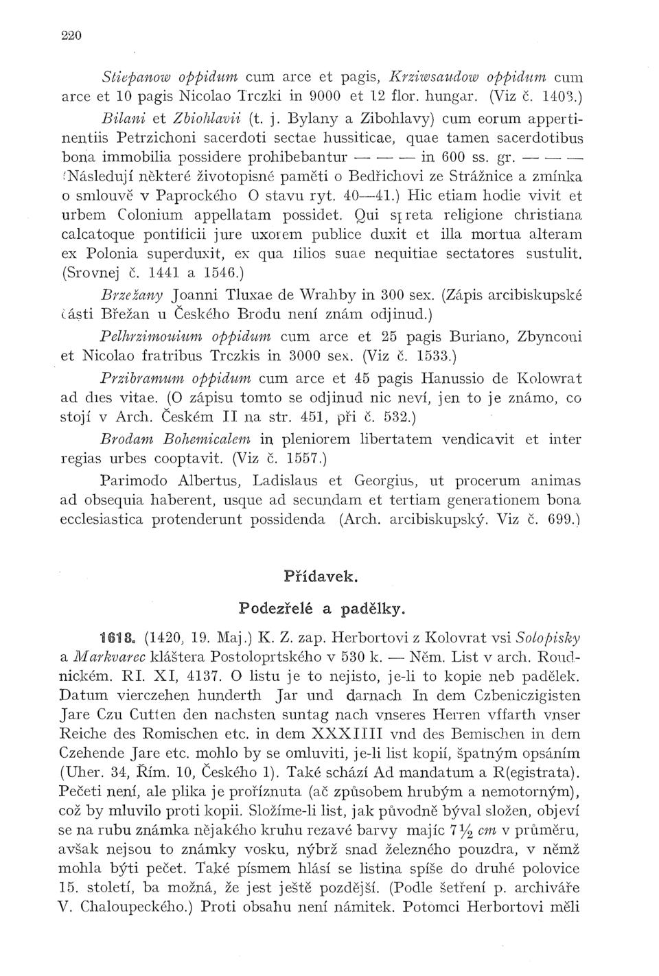 a zmínka o smlouvě v Paprockého O stavu ryt. 40—41.)