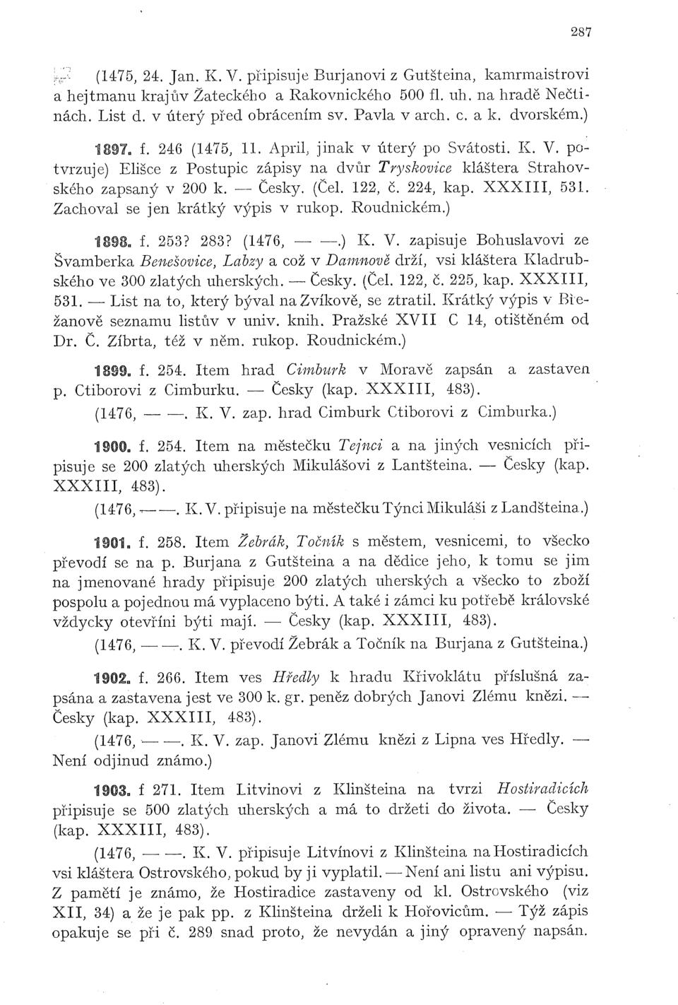 XXXIII, 483). (1476, — —. K. V. zap. hrad Cimburk