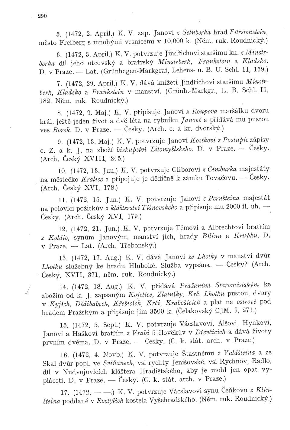 Český XVIII, 245.) 10. (1472, 13. Jun.) K. V. potvrzuje