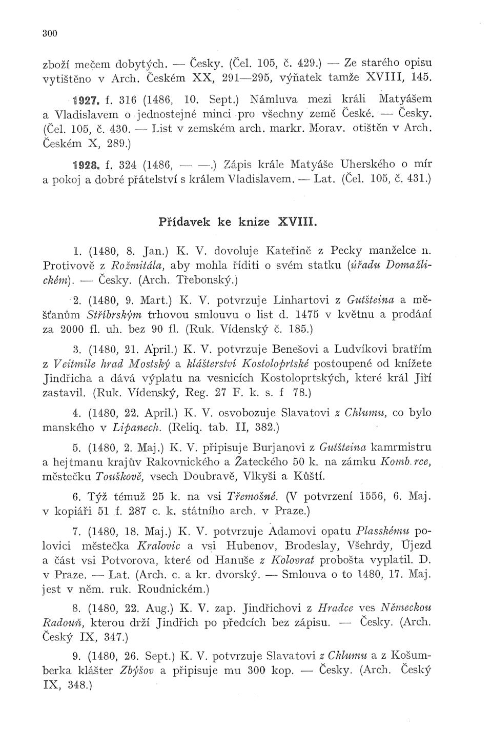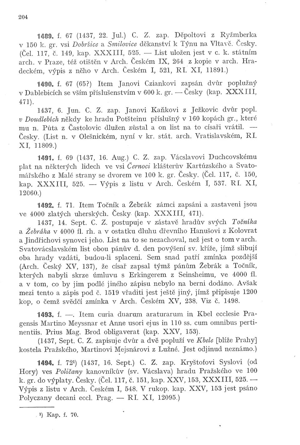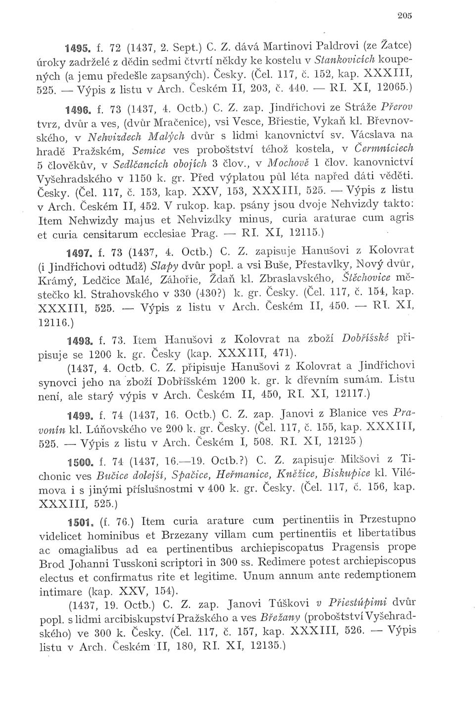 Česky (kap. XXXIII, 471). (1437, 4. Octb. C. Z. připisuje