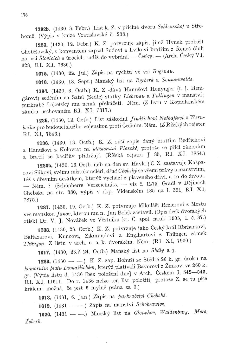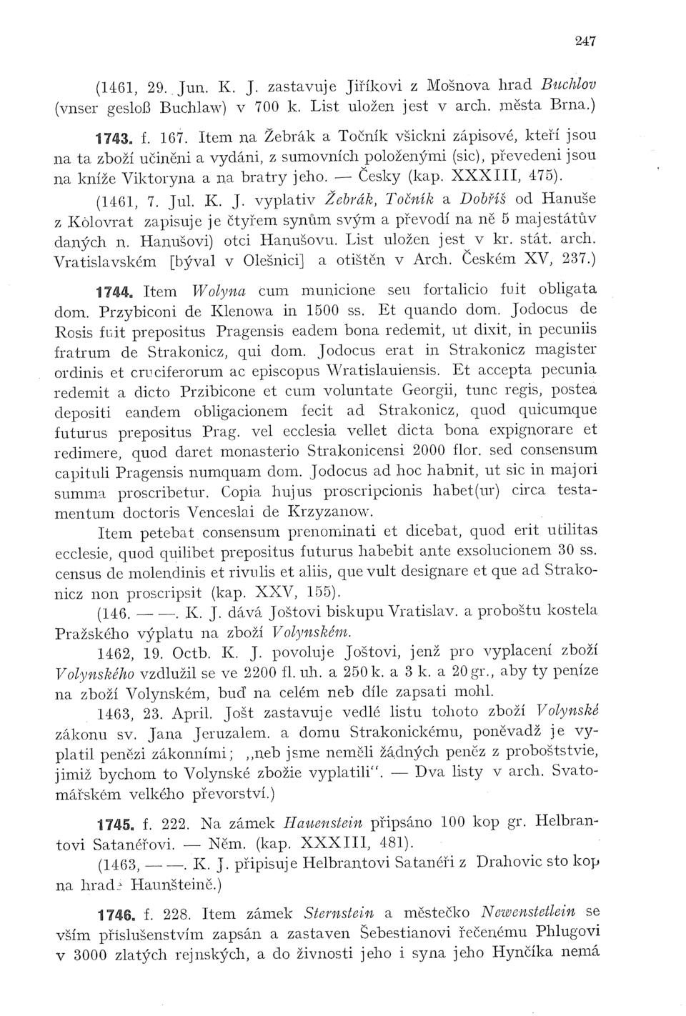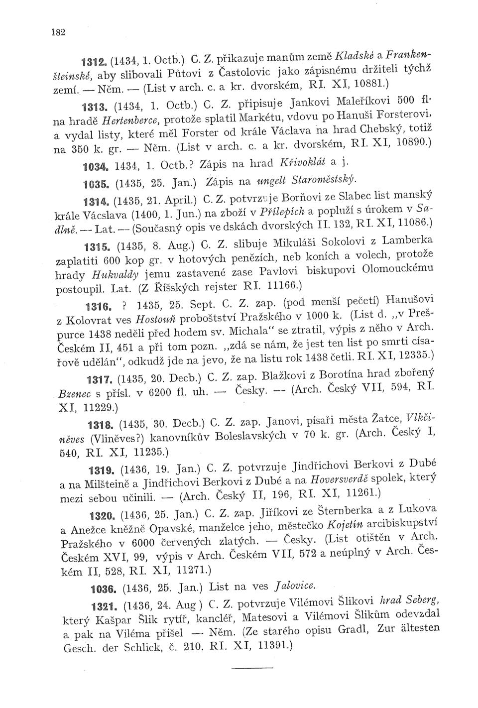 Česky (kap. XXXIII, 471). (1437, 4. Octb. C. Z. připisuje