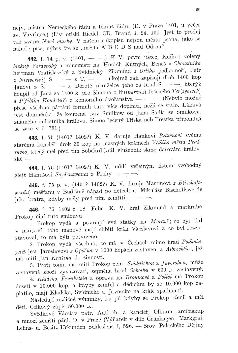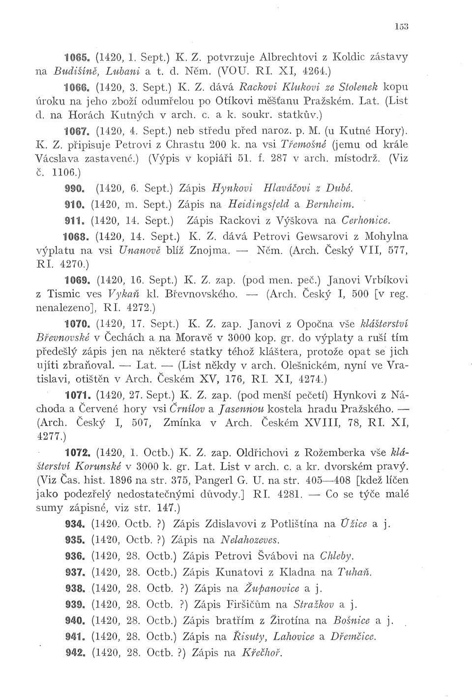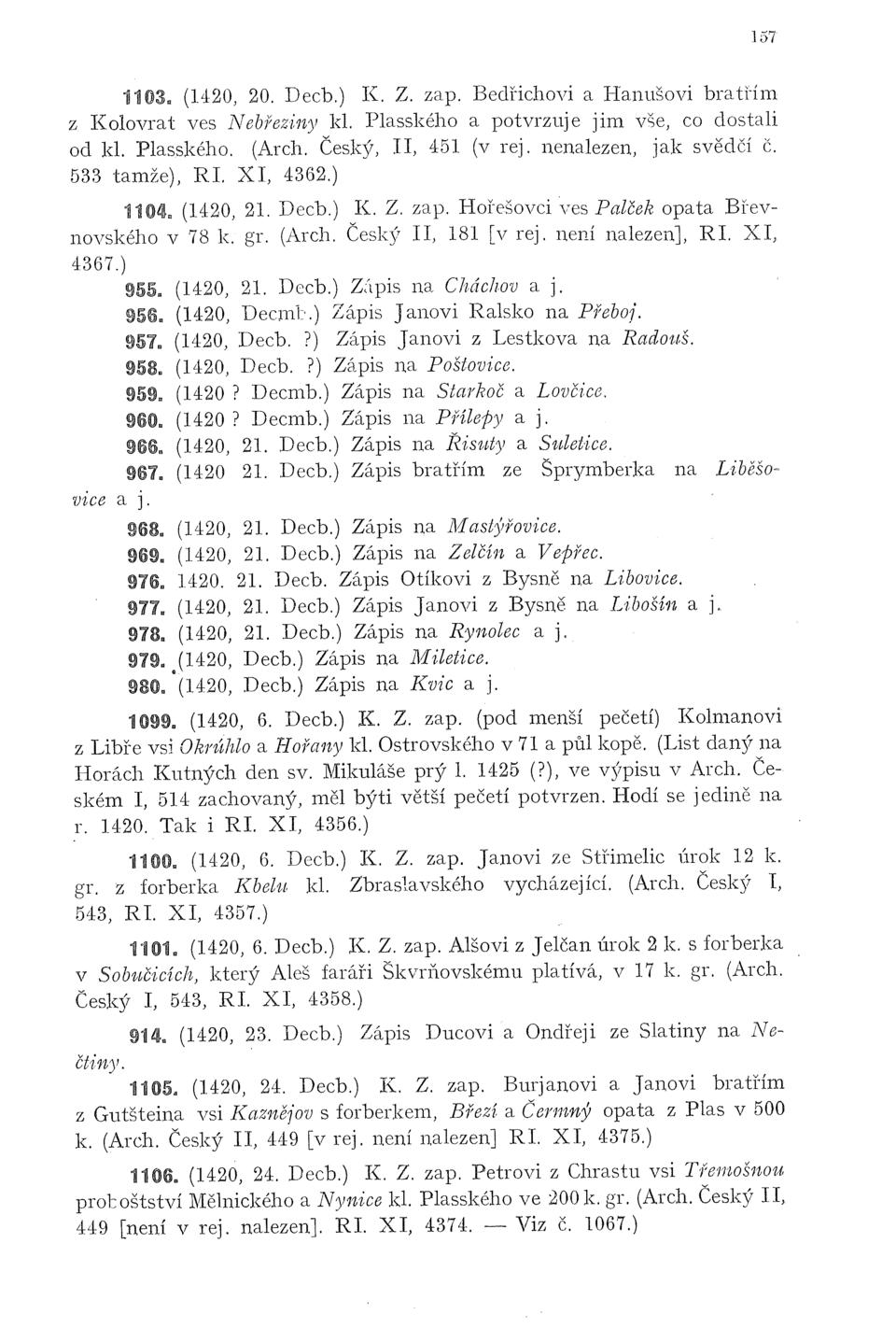 v arch. c. a k. soukr. statkův.) 1067. (1420, 4.