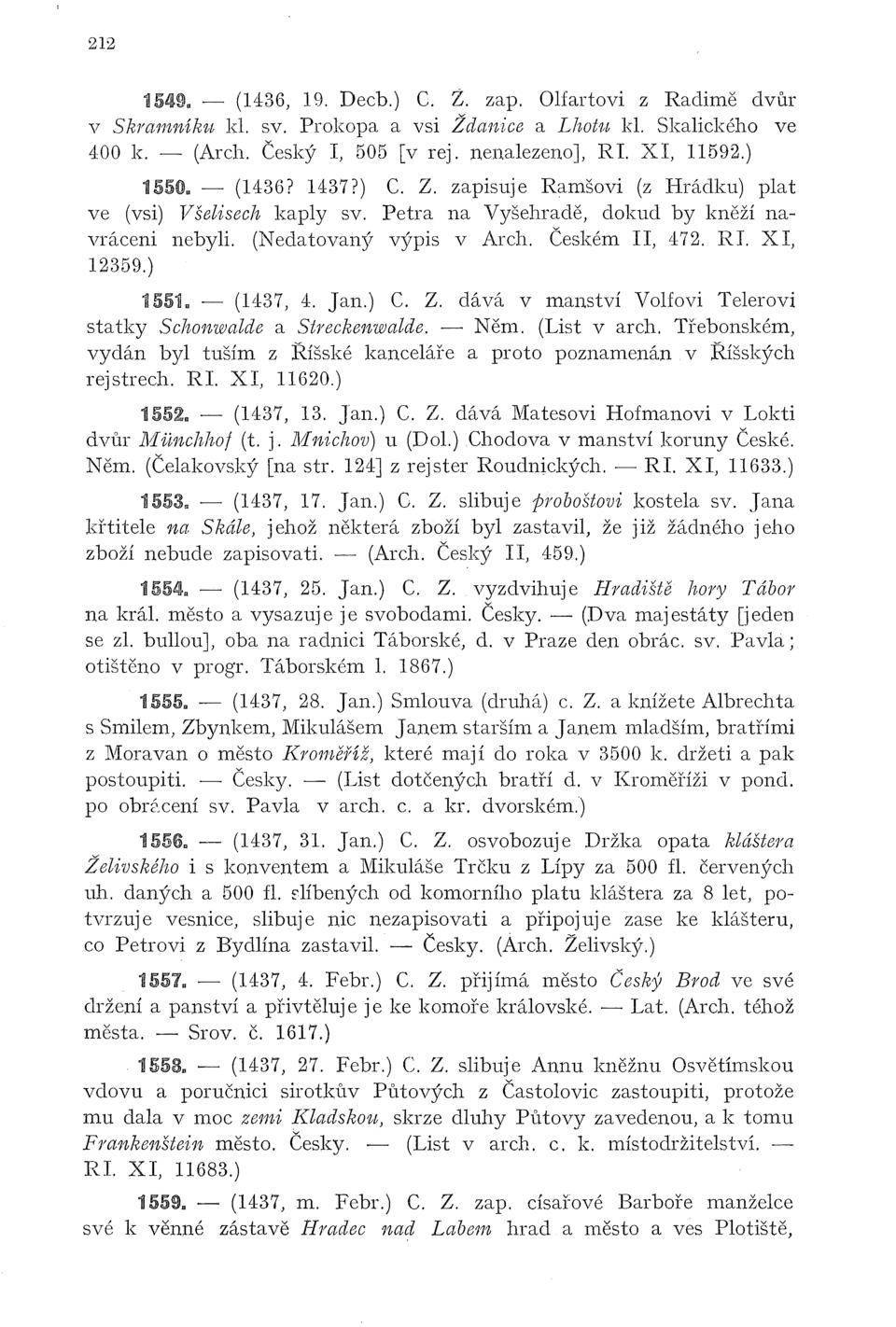 Zbytky register králův Římských a Českých 1361–1480 (Sedláček)