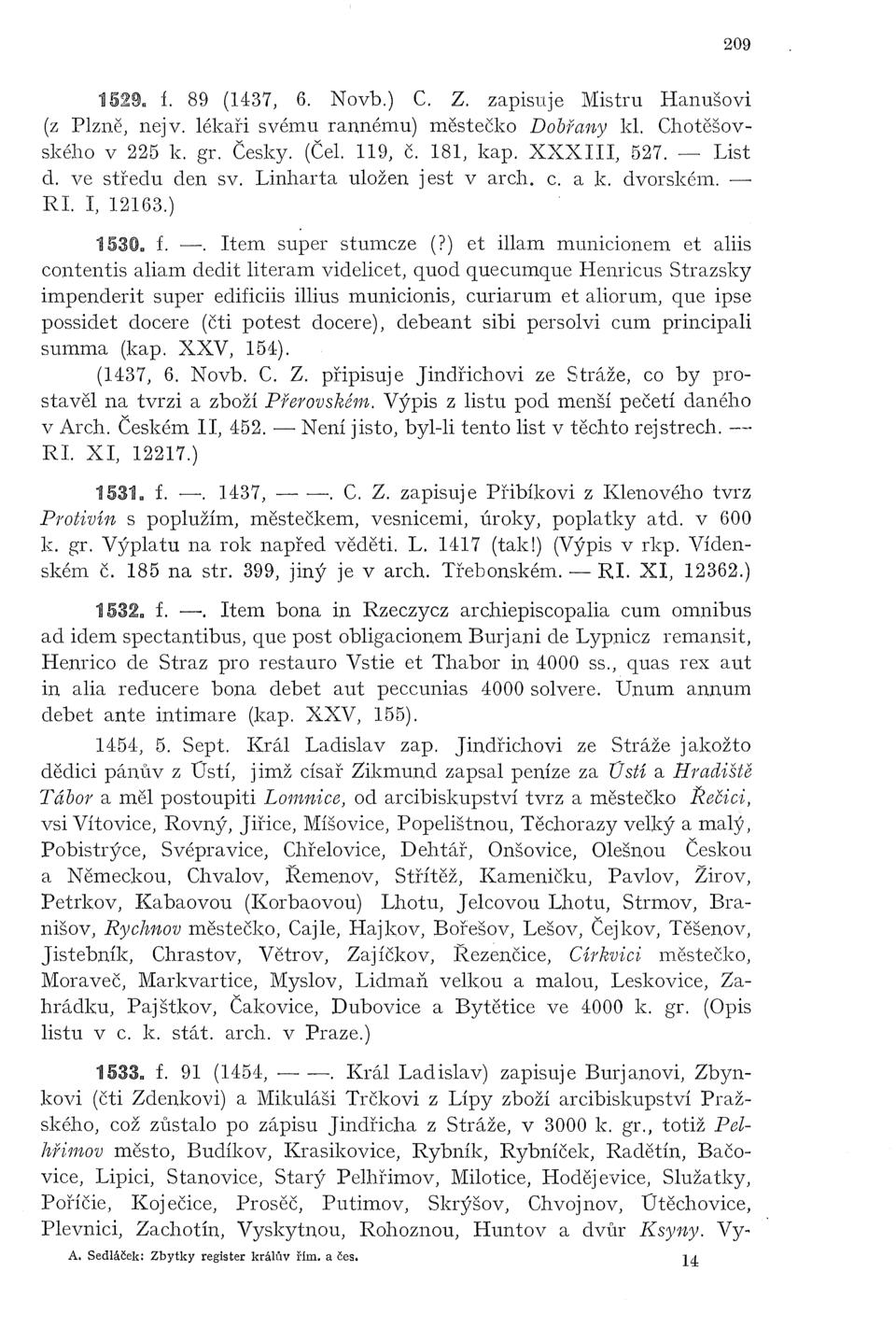 Zbytky register králův Římských a Českých 1361–1480 (Sedláček)