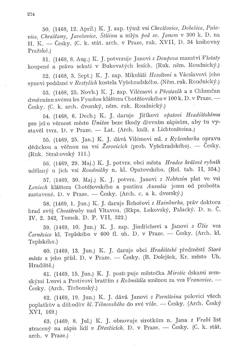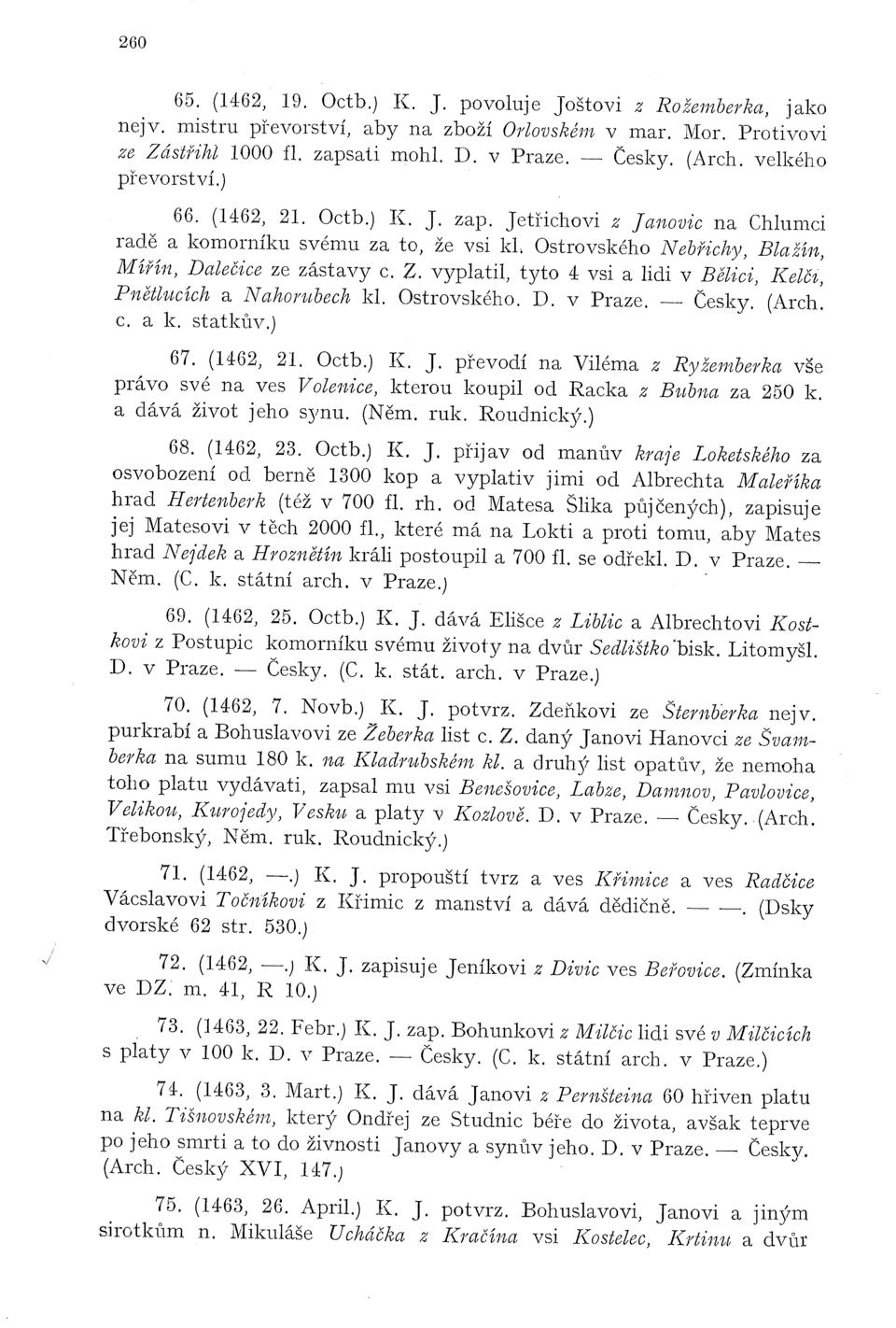 arch. v Praze.) 74. (1463, 3. Mart.) K. J. dává