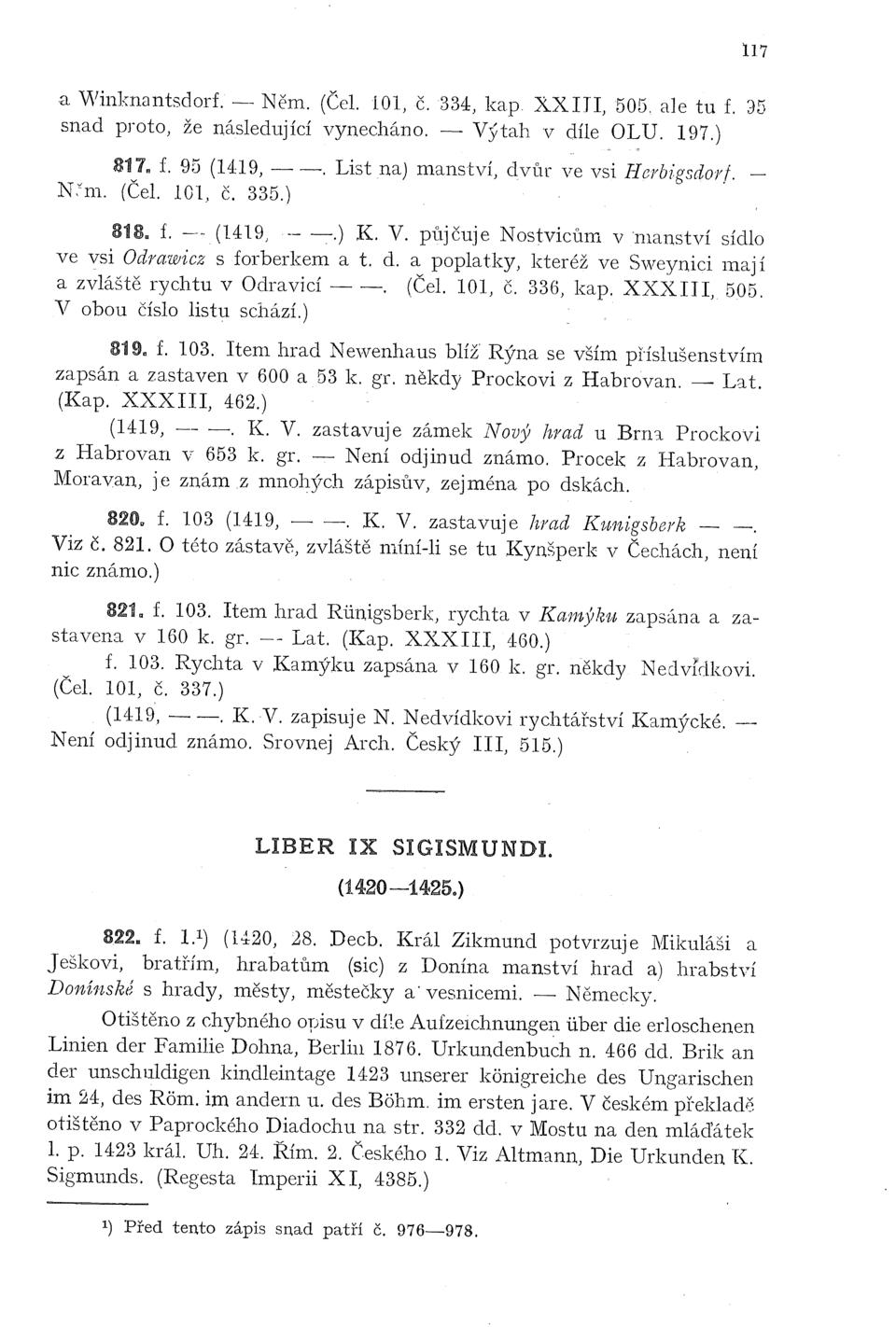v Českých jako jeden z prvních zápisův. Altmann, Die Urkunden