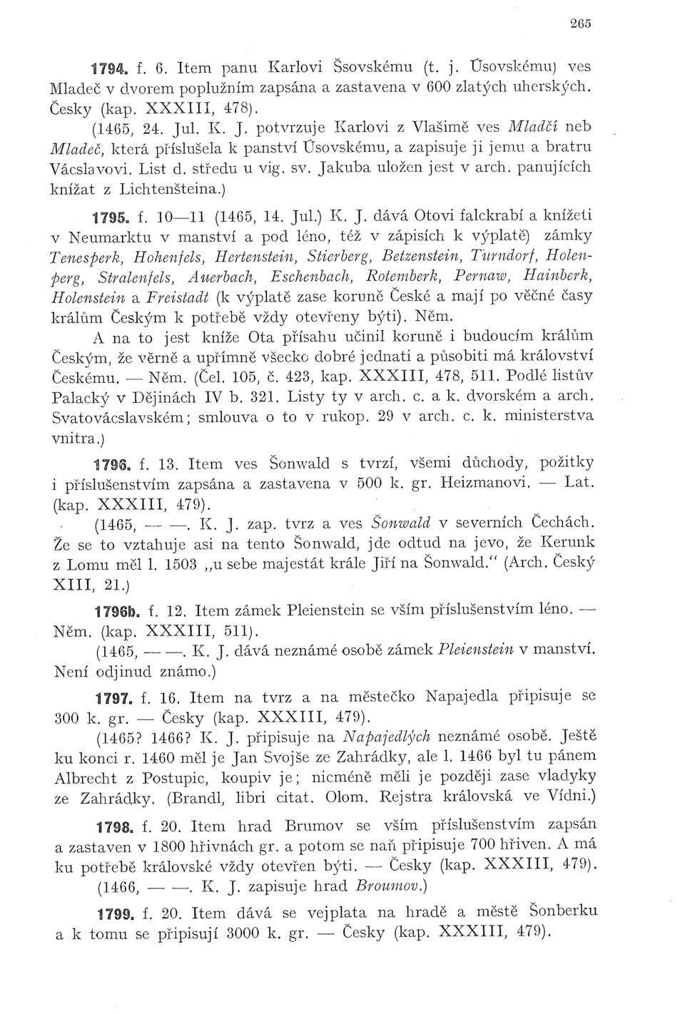 XXXIII, 478). (1465, — —. K. J. zap. město Litovli