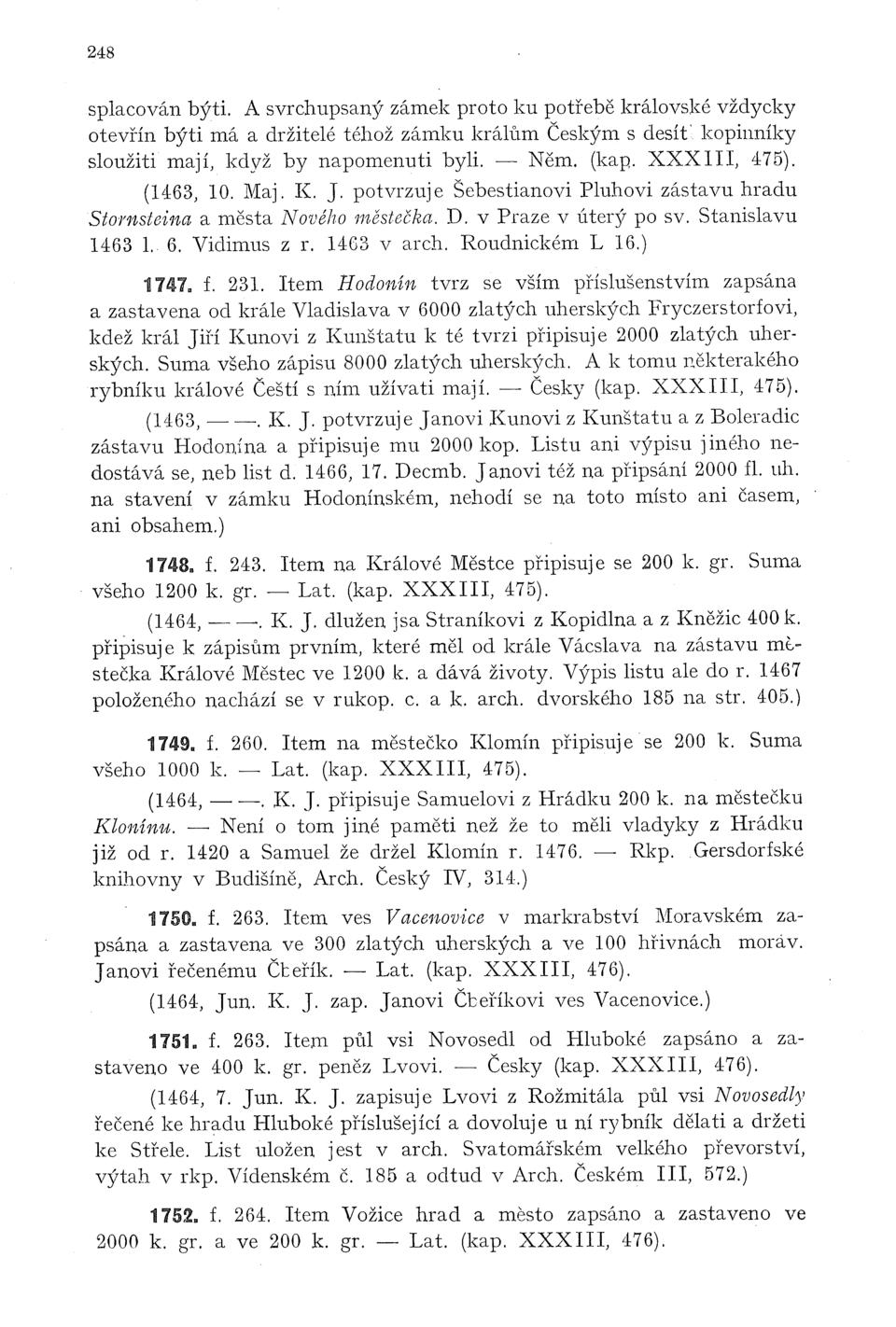Česky (kap. XXXIII, 476). (1464, 7. Jun. K. J. zapisuje