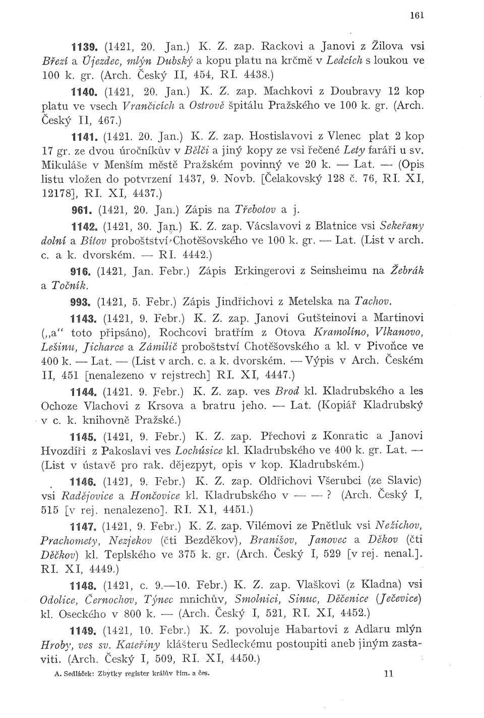 Zbytky register králův Římských a Českých 1361–1480 (Sedláček)