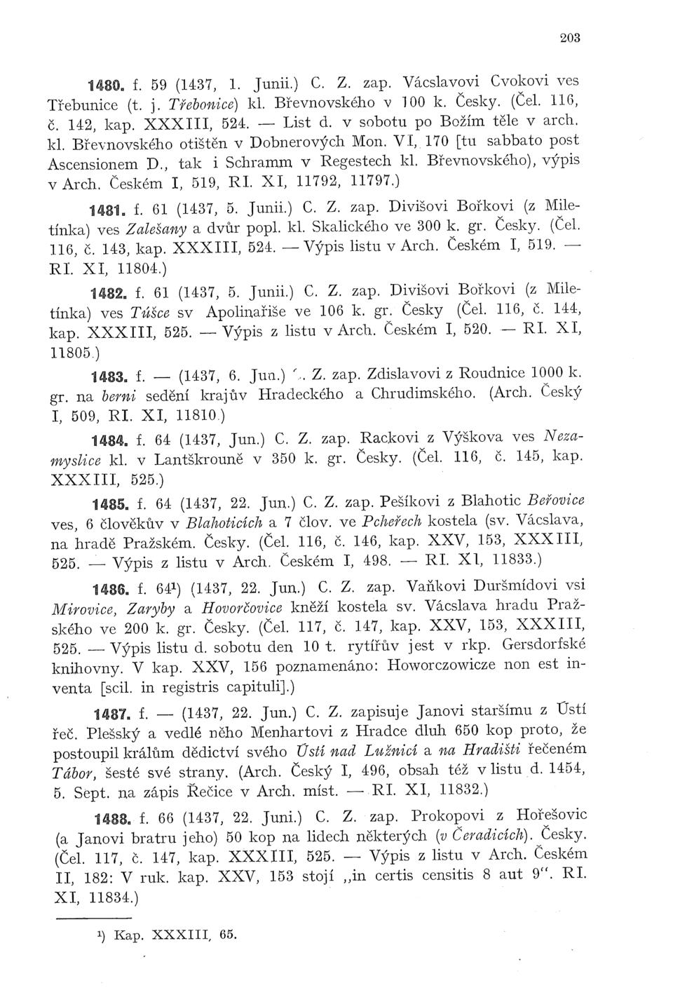 Zbytky register králův Římských a Českých 1361–1480 (Sedláček)