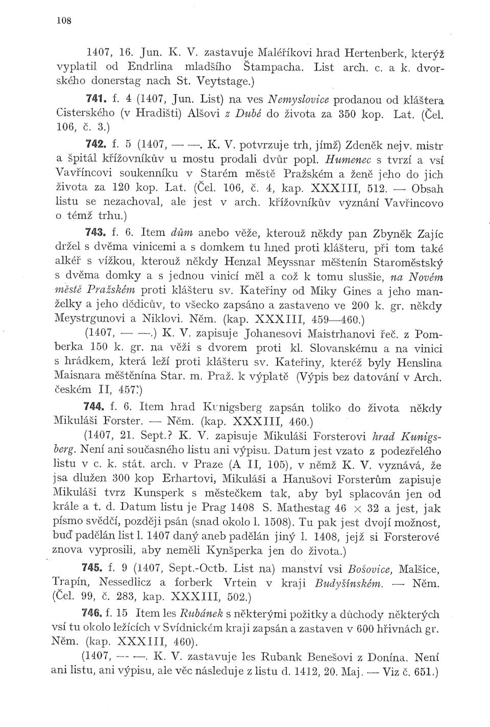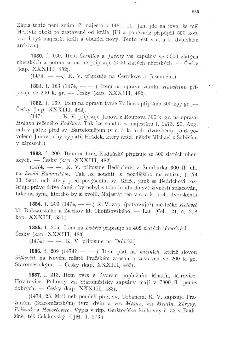 Zbytky register králův Římských a Českých 1361–1480 (Sedláček)