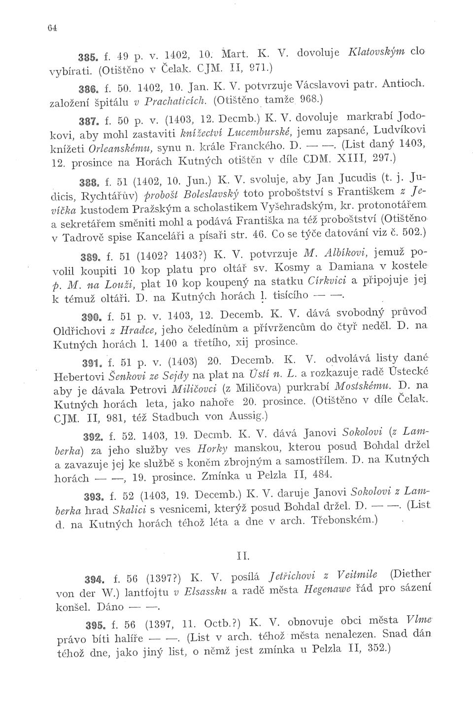Zbytky register králův Římských a Českých 1361–1480 (Sedláček)